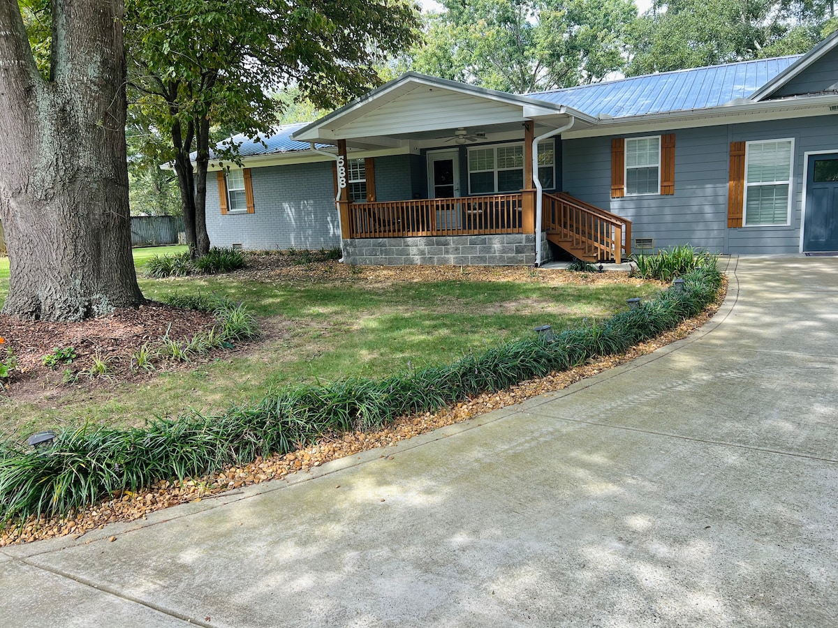 Bring the family for fishing, fun and relaxation while enjoying our cozy 3 bedroom/2 bath home across the street from beautiful Lake Guntersville! Perfect central location, sleeps 8 comfortably, easy in/out level parking for 3 trucks w/ boats; outside electric plugs and LESS THAN 1 block from our largest public boat ramp. Across the street is our 7 mile park bordering the lake with walking/bicycle trails, playground, picnic areas, basketball, 2 miles from Superior Courts & historic downtown.