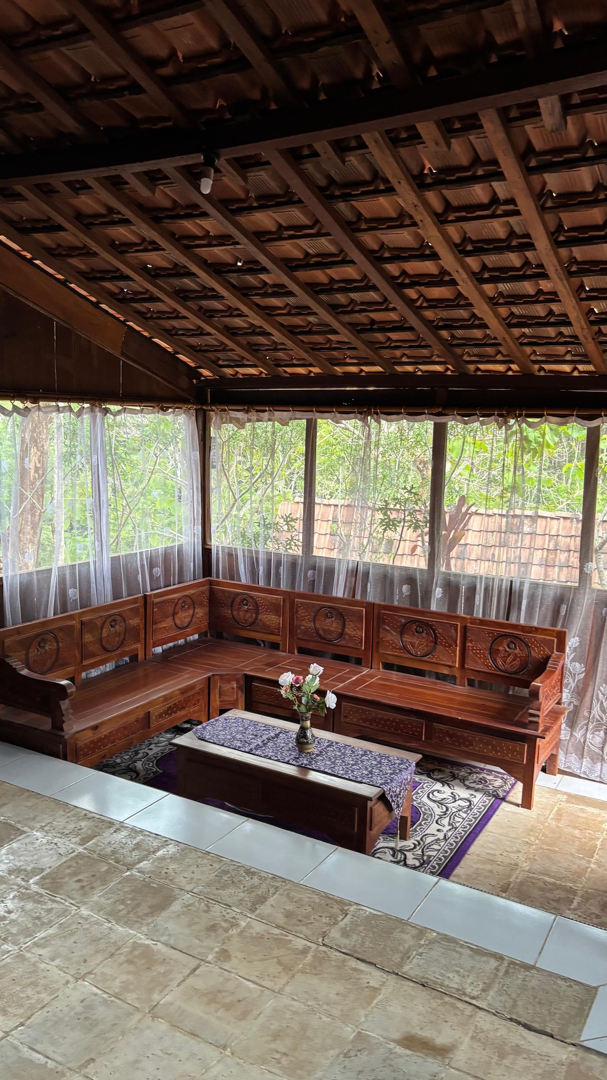 Take it easy at this unique and tranquil getaway. You can feel the friendliness of the villagers. Located in the countryside and adjacent to the river. The joglo area is spacious, can accommodate up to 16 people with an additional extra bed. There is wifi in the villa