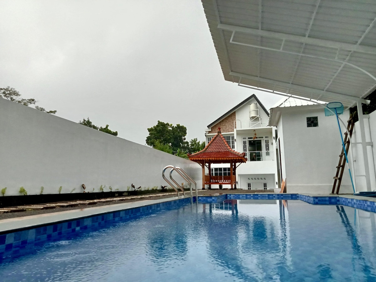 🏡 Private Villa – Entire Property Rental The price shown is for the entire villa, not per room. During your stay, the whole property is exclusively yours — no other guests will be present. With 8 spacious bedrooms, a large pool 15x9 and 1,400 m² of living space, it comfortably hosts up to 20 guests. Only 3 km from town and 20 minutes from Yogyakarta city center, it’s perfect for families, friends, or retreats, surrounded by tropical peace and comfort. 🌴✨