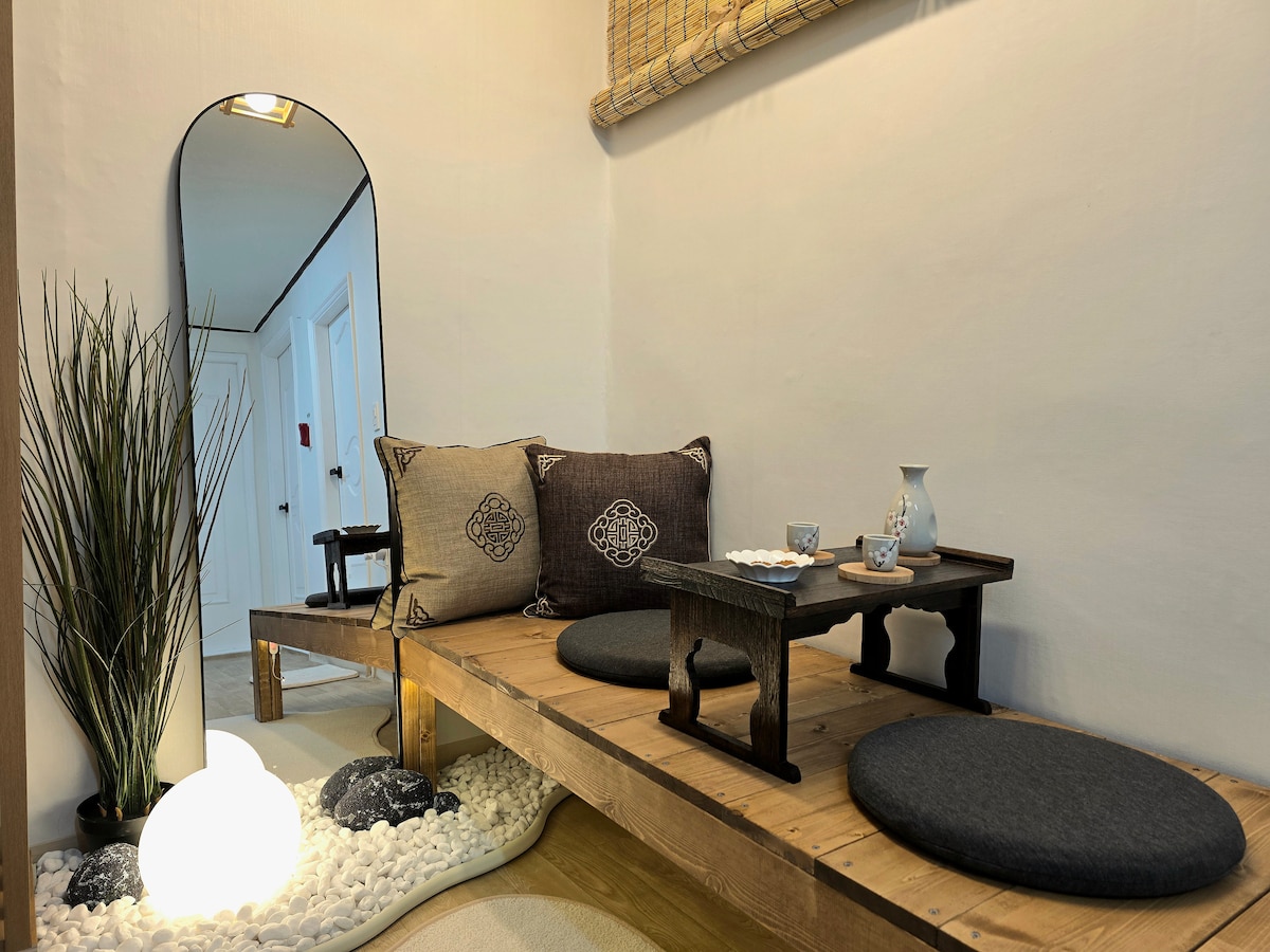 🌤 Welcome to Dodistay — a home where sunlight lingers. Located just east of Seoul in Guri, Perfect for group trips or family stays, this bright three-room apartment offers plenty of space to relax. Large windows fill the rooms with warm sunlight, a cozy and inviting atmosphere. The living room features a large leather sofa, 65-inch smart TV, and Marshall Bluetooth speaker for your comfort. With its elegant cream-toned interior, the space feels modern yet homely, accommodating up to 9 guests.