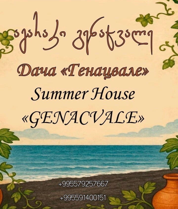 Wooden two-storey cottage in the courtyard of the Golden Lion Hotel, Kobuleti, Agmashenebeli 514A. The cottage was built and put into operation in July 2025. On the ground floor there is a living room with a kitchen, a shower, a toilet; a sofa, a table, a wardrobe. On the second floor there is a bedroom with beds. There is a large outdoor swimming pool near the cottage. A place to relax near the cottage. The beach and the sea are 200 meters away.