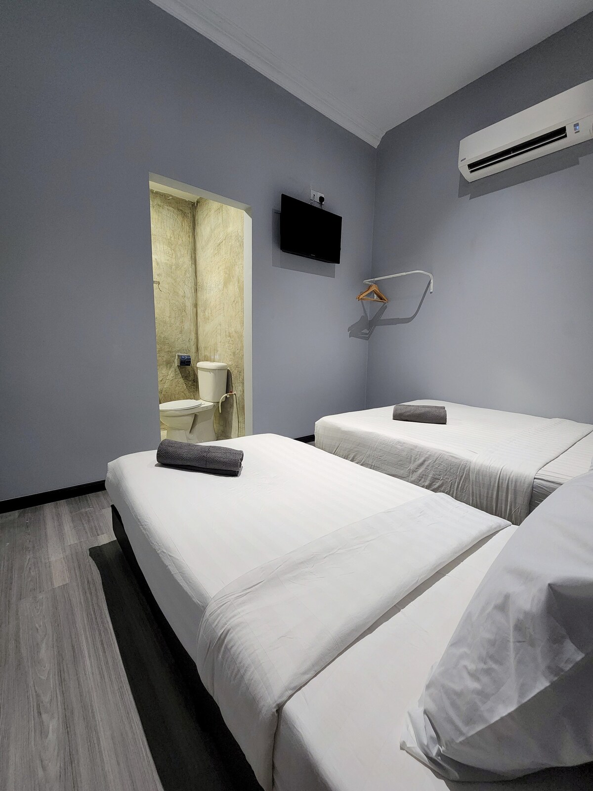 家庭2张标准双人床|靠近Komtar的窗户房|Pri浴室|
