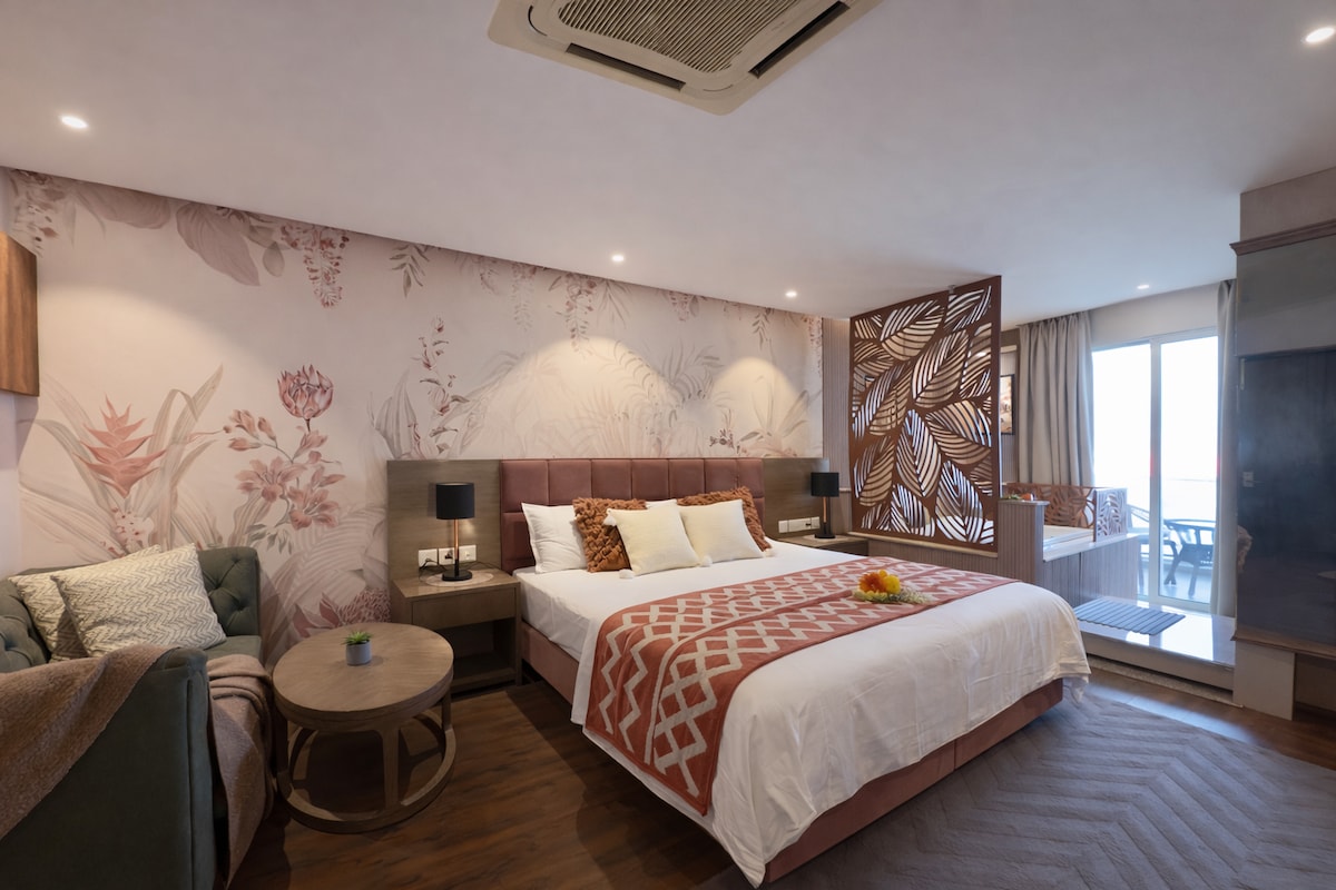Stylish studio in Gurgaon's Sector 49, inside Element One Mall. Perfect for 2, this private retreat offers a king bed, a dedicated workspace with 150 Mbps Wi-Fi, a full kitchenette, and a private balcony. Enjoy direct access to cafes & shops, with the airport just 20 mins away. Ideal for work or leisure, offering comfort and ultimate convenience.