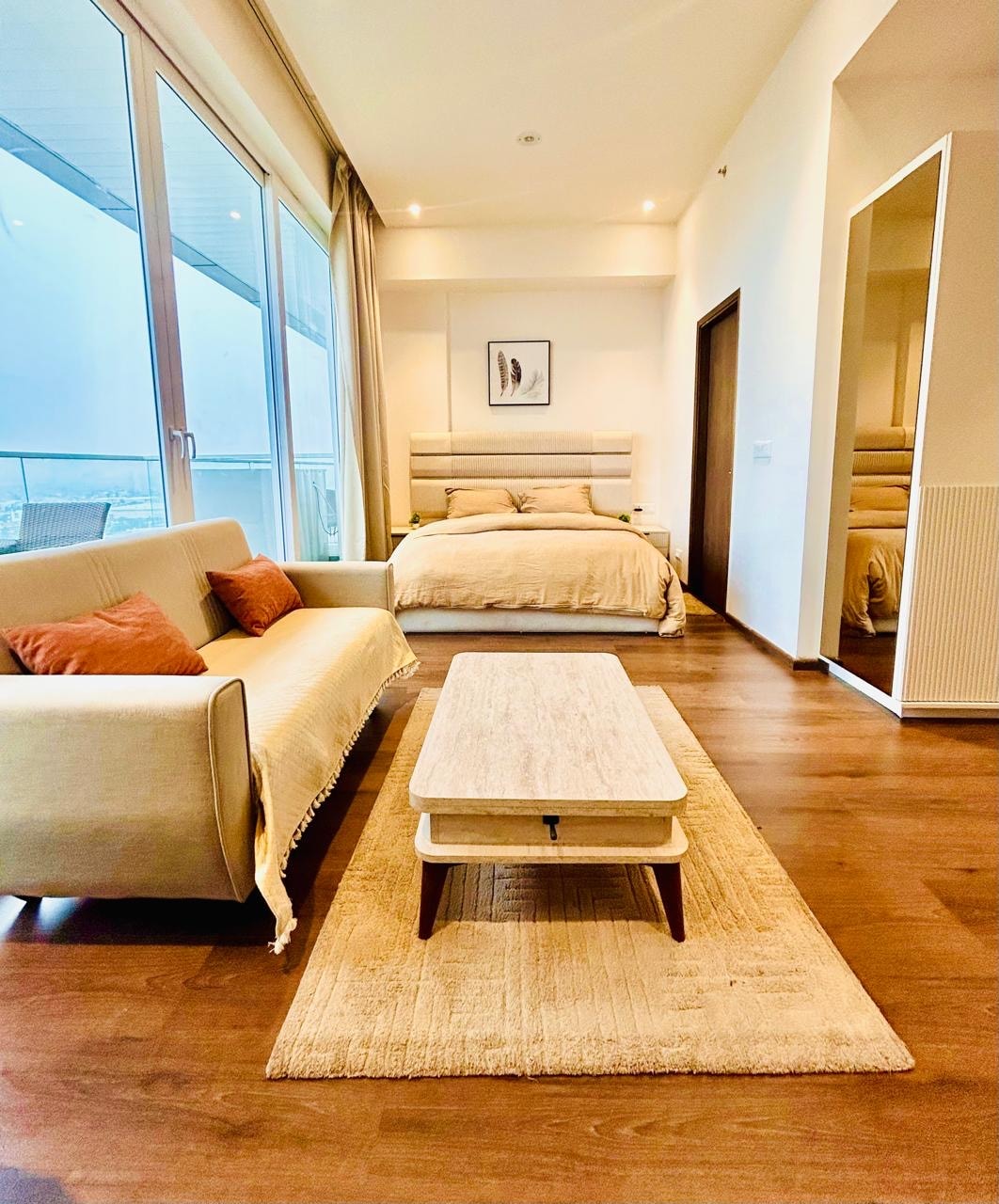 Fully furnished modern studio apartment located right on Dwarka Expressway, offering comfort and convenience near to Airport, Yashobhoomi Convention Center and IT Manesar. Surrounded by popular food outlets like Haldiram, KFC, Domino’s, Subway and many more, it’s the perfect stay for traveler’s seeking easy access and a vibrant neighbourhood.