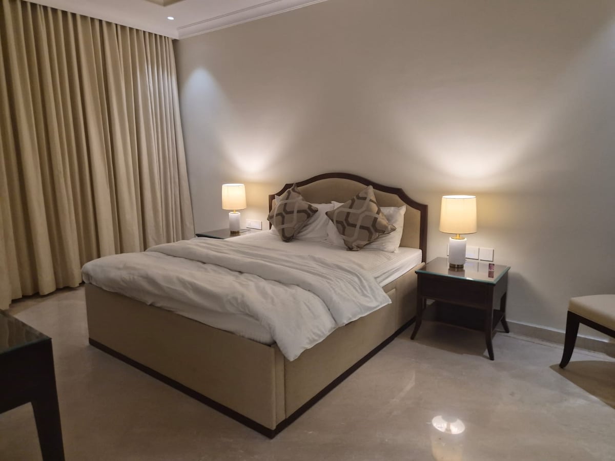 Welcome to The BrownGrey Luxury APT! It’s perfect for a weekend getaway or a long, cozy stay. -Please note: Loud music and parties are strictly prohibited. -Features include self check-in. -Fully equipped kitchen. -4 cozy bedrooms with ACs. -Fast internet for WFH. -Easy access to Uber/Ola/BluSmart. -The convenience of ordering food via -Swiggy/Zomato. -There's also an on-site restaurant. -Just 35min from the airport.