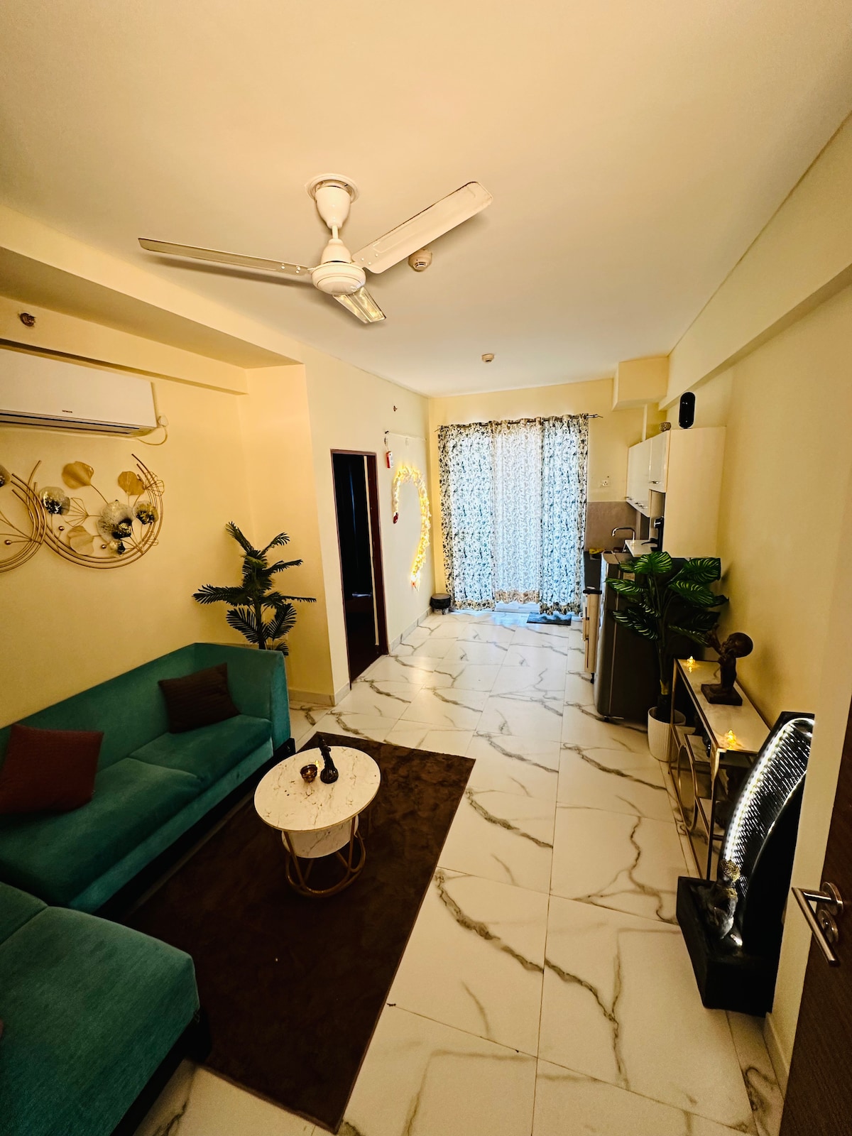 Wake up to breakfast & tea/coffee in this peaceful urban retreat, a space that feels like a warm hug, nestled ~3 mins from Golf Course Road, yet SO peaceful! Includes complementary essentials for your breakfast & tea/ coffee. Every small detail such as scented candles, air diffusers, sound system, mood lighting, personal care items, cooking essentials, board games & decor items are thoughtfully curated to make your stay cozy, comfortable, and unforgettable." 🏡💛