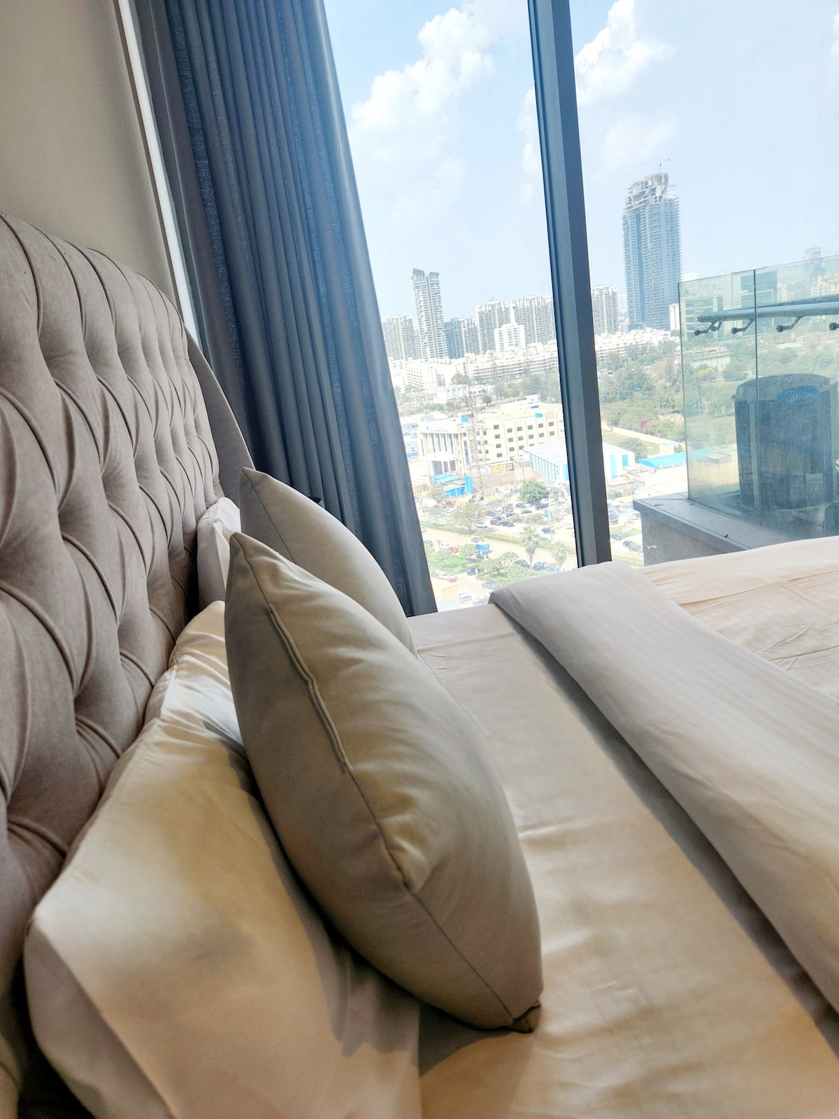 Experience luxury in this high-floor studio with a stunning Expressway view. Enjoy a queen bed, Smart TV, fast Wi-Fi, work desk, private kitchen, and modern bathroom. Located in WTC Plaza 106, close to corporate hubs, airport & restaurants. Couples welcome, 2 guests allowed, visitor entry with ID. Check-in 2 PM / Check-out 11 AM. Perfect for business, long stays & relaxing getaways.