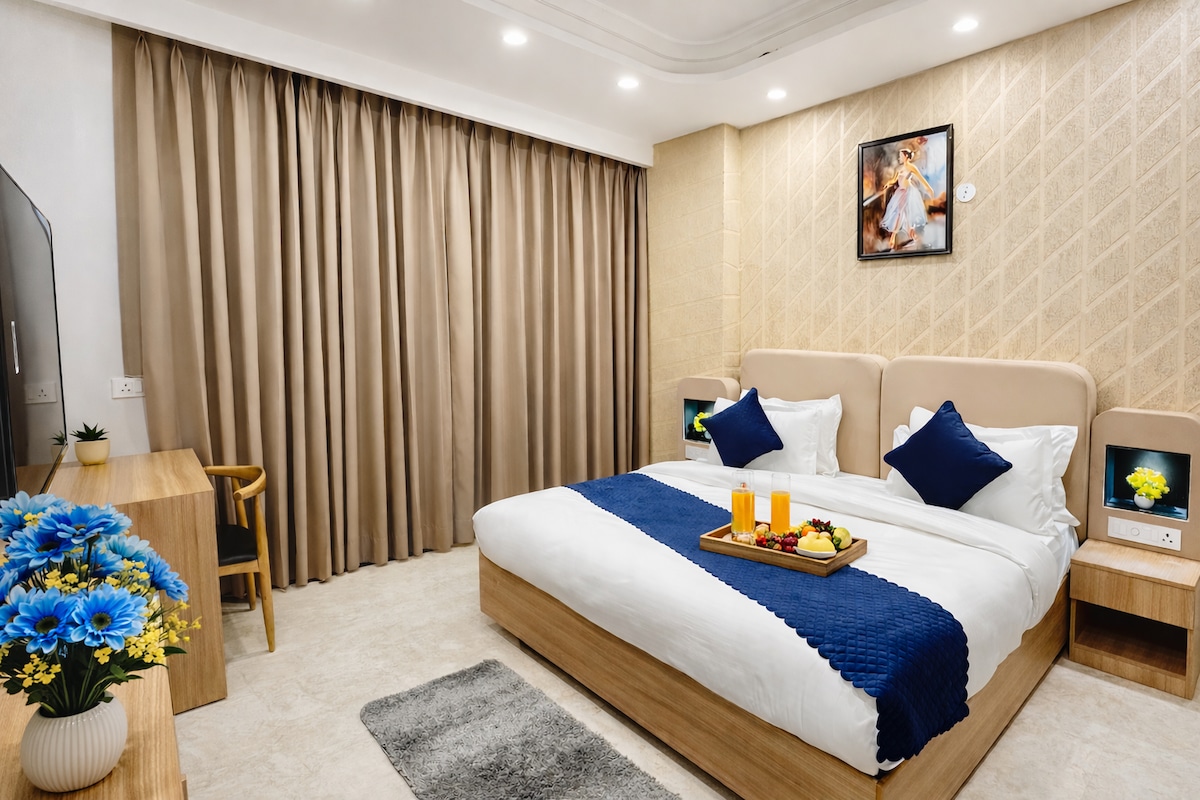 Welcome to your home away from home! Our Luxury Queen Room offers a perfect blend of luxury, comfort, and convenience. Stay just minutes away from Artemis Hospital , Golf Course road and Sector 54 Chowk Metro station, ensuring seamless connectivity to the city." We do welcome Foreign Nationals