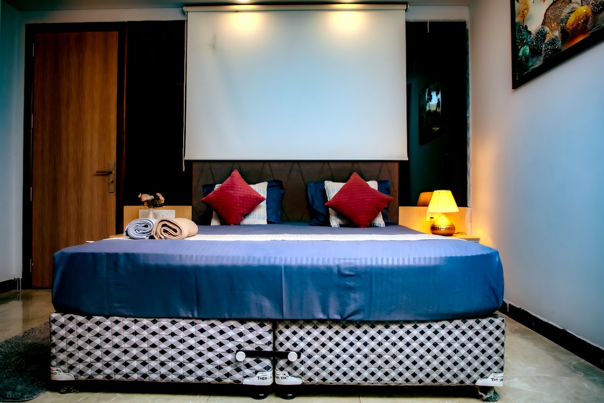 Lush by Lumen Leaf crowns AIPL Joy Square, Sector 63. Floor‑to‑ceiling glass reveals Gurgaon’s skyline and sunrise over the Aravalli hills. Sink into a king bed with plush throws, mood lighting, Wi‑Fi and Netflix, or brew pour‑over coffee at the desk. A sleek kitchenette, stocked minibar and spa rain‑shower spoil you. Cafés, boutiques and an INOX cinema lie 5 min away; CyberHub, Golf Course Road and HUDA City Metro are just 12 min—perfect for work stays, staycays or couple escapes.