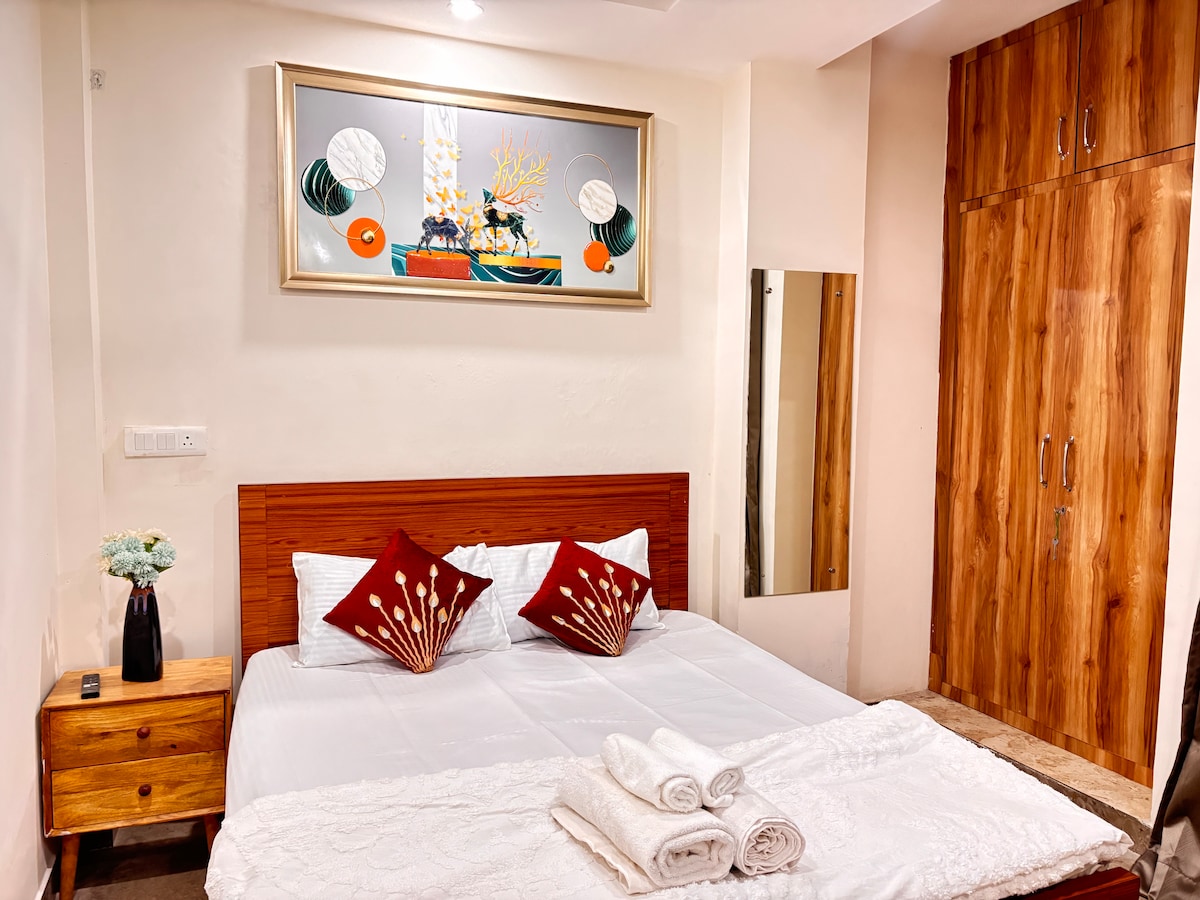 Enjoy a relaxing and rejuvenating getaway in our serene, fully serviced, private 1BHK located within a luxury gated community! Perfect for solo or couple travelers, expats, remote work from home, or long / monthly extended stays! With amenities like 24/7 concierge, on-site café, multi-cuisine restaurant, laundry, housekeeping, gym, clubhouse, 24/7 security and easy access to Delhi Airport, Medanta Hospital etc—this is your peaceful oasis in Gurgaon Delhi NCR with all homely comforts and more!