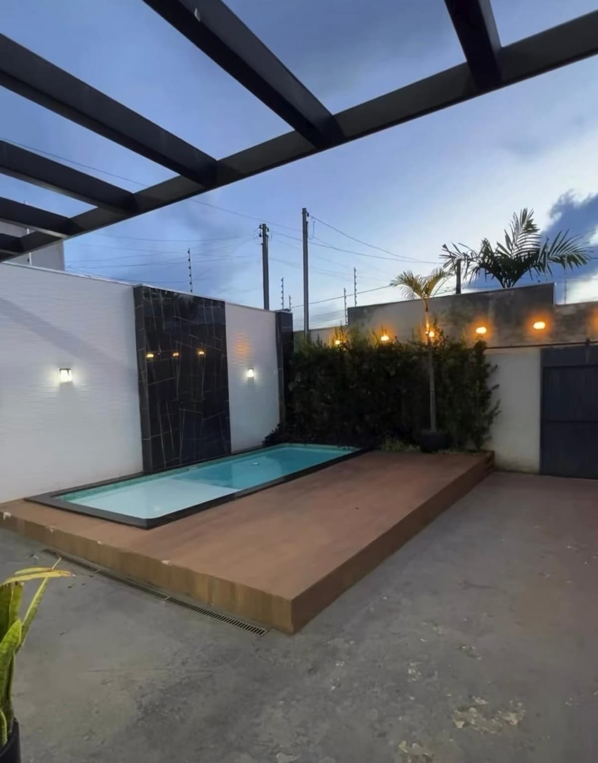 Uma residência espasosa que combina conforto, funcionalidade e estética. Ela é projetada para atender às necessidades dos seus huespedes oferecendo áreas sociais bem espaçosas com varanda gourmet, piscina e abrigo para 1 carros com 2 banheiros um quarto esta localizada em um ambiente muito tranquilo