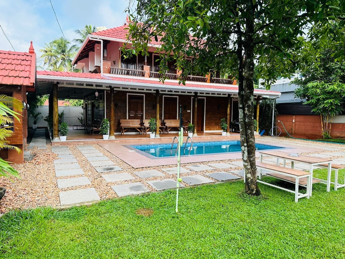 Spacious 4-bedroom private home surrounded by lush paddy fields in a village setting. Just 15km from the Guruvayoor Sri Krishna Temple and Thrissur Railway Station. Enjoy 2 comfortable halls for gathering, a welcoming dining space, and fully-equipped kitchen. Wake up to serene countryside views and experience authentic Kerala village life. - 15km to Guruvayoor Sri Krishna Temple - 15km to Thrissur Railway station and Vadakunathan temple Special offer for those who book for long stay