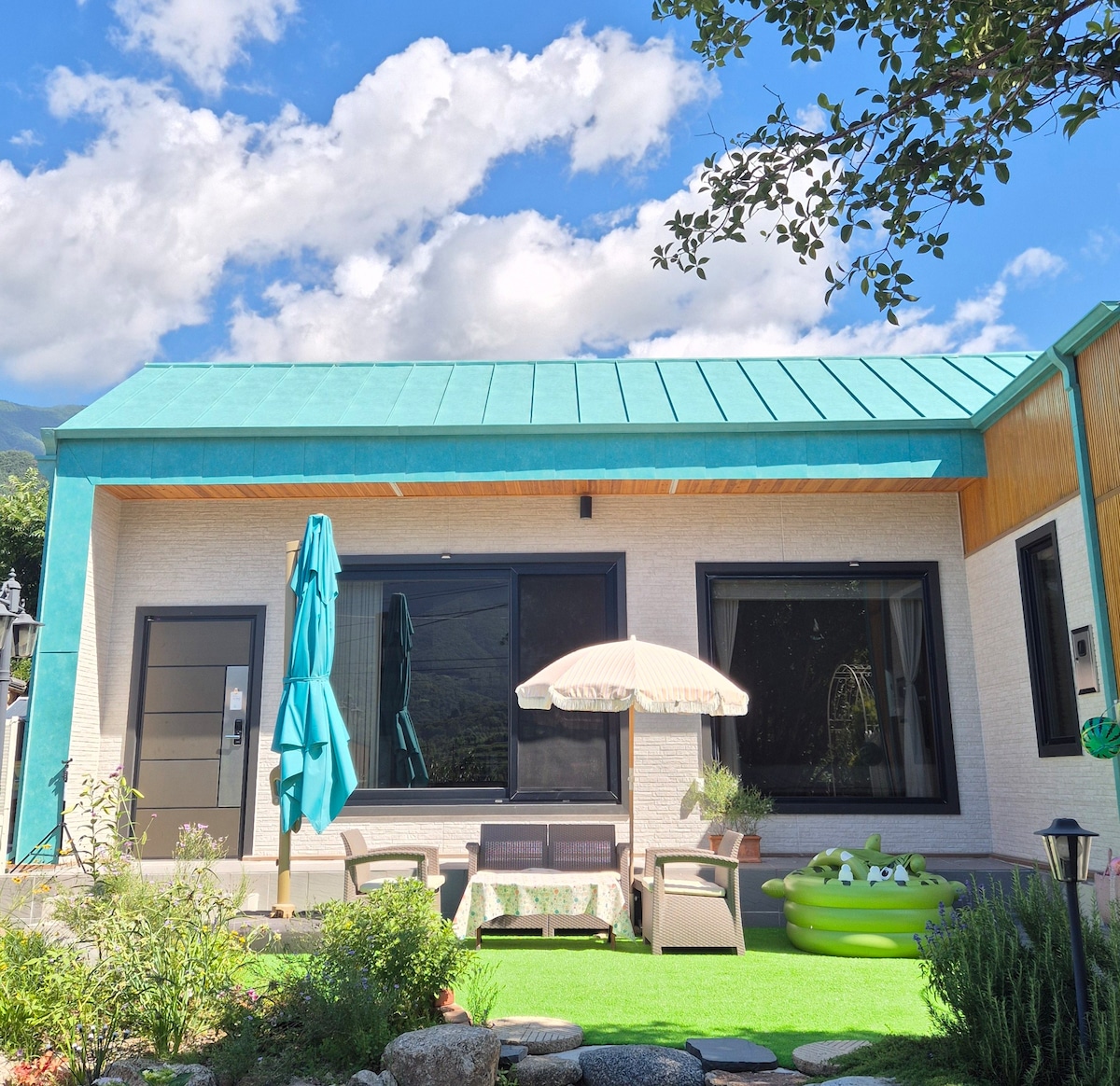 지리산 뷰로 둘러 싸인 하동의 알프스라불리는 악양면 정동마을골목 구석구석 이쁜 마을입니다. 24년 새로지은 신축 주택입니다. 외부건축은 직접디자인하고 난방과 방음부분에 많은 정성과 공을드린 포근하고 예쁜 신축 숙소 입니다. 중앙 마당 가운데 커다란 은목서나무가 신비하고 안정감을 주어서 동화같은 힐링공간에서 ‘천천히, 설렁설렁’ 머물다 가실 수 있도록 편안한 온기와 단정한 공간을 준비했어요. 숙소는 두 채로 운영되고 있어요. 🍊 냇가방 작은 시냇물 소리를 가까이 들으며 쉬기 좋은 독채예요. 테라스가 바로 연결되어 있어서 실내와 마당을 드나들기 펴니해요 따뜻한 햇살 들어오는 침실, 아늑한 거실, 쉼표 같은 마당 풍경이 여행의 속도를 부드럽게 낮춰줍니다. 🫶 동백꽃방(반려견 동반 가능) 마당과 테라스가 연결된 독채로 5kg 미만 반려견과 함께 편히 머무실 수 있어요. 작은마당엔 반려견과 오붓한시간을 갖을수있게 이태리벽돌로 감싸서 더욱아늑하고 안심하고 쉴 수 있습니다.