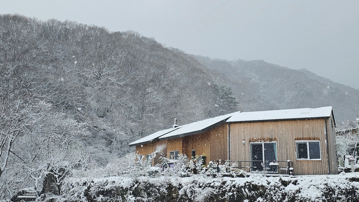 숙소안으로 들어가면 아늑하고 감성 분위기 거실과 깔끔한 주방 안쪽으로 들어가면 2023.1월에 확장공사한 넓은 침실과 따뜻하고 밝은 분위기에 통유리 밖으로 보이는 산속뷰가 힐링에 시간을 만들어 드려요~ 아늑하고 조용한 곳으로 자기의 시간을 즐길수 있으며 숙소옆 작은 계곡에는 다슬기와 피리 작은 물고기가 있어 재밋게 놀수 있어 행복합니다. 봄에는 쑥과 봄나물을 캐는 재미가 즐겁습니다. 넓은 잔디마당을 아이들 반려견과 함께 힐링여행이 될수 있어요~