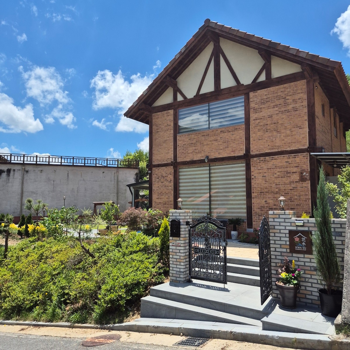 자연 속 꽃과 물의 쉼터, 화수 가든스테이 화수 가든스테이는 밑으로는 섬진강 물줄기가 흐르고 위로는 지리산 자락의 뷰를 가지고 있습니다. 정원으로 낮에는 나비와 새가 찾아오고 저녁에는 모든 불을 끄고 하늘을 보면 수많은 별들이 쏟아지는 곳입니다. 1층방 싱글침대 2개 / 2층방 싱글침대 4개 각층마다 화장실이 있습니다. 온 가족이 머물기 좋은 넓은 거실과 주방이 있습니다. 냉온정수기, 3구인덕션, 네스프레소 커피머신, 조미료, 4인테이블, 6인용 교자상(접이식 테이블) 2개, 비데, 샤워용품, 와이파이, 보드게임, 스마트티비 등등 편하게 머물다 가실수 있도록 꼼꼼하게 준비했습니다. 비가와도 이용할수 있도록 지붕이 있는 나무데크 위 넓은 바베큐장과 정원속에서 캠핑 분위기로 불멍을 할수있는 캠프파이어장이 있어요.