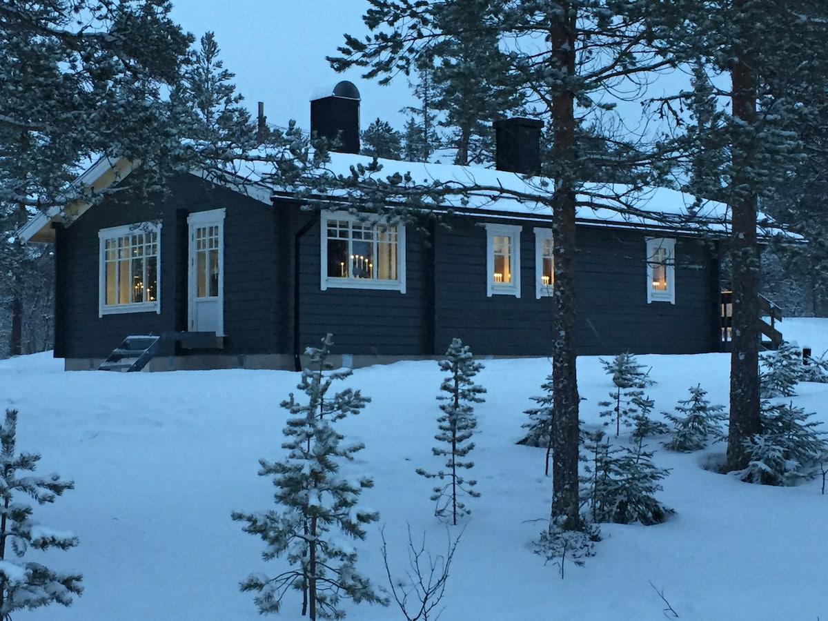 Welcome to our charming cabin with a cozy sauna and grill room in the backyard. The cabin is divided into two separate parts rented out separately. There's a free ski bus nearby and access to beautiful cross-country and snow scooter tracks just by the house. The slopes, supermarkets etc. are just a 5-minute drive. Local restaurants within a 15-minute walk. Please note that cleaning is only included during Christmas, New Year, W6,W7,W8, W9. Cleaning and bed linnen can be requested anytime.