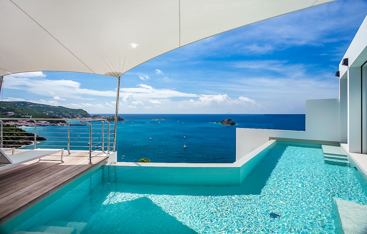 Dasha is ideally located on the top of Gouverneur. The villa, in a leafy setting has an amazing view on the ocean. It is perfect for guests who are looking for privacy and rest. The large living room and the kitchen are opened onto the heated pool and the sea. As two of the bedrooms may be connected, this villa is perfect for family vacation. We strongly recommend it.