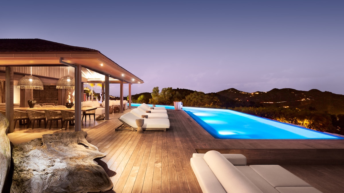 Blackstone provides modern, gilded comfort amongst the rugged beauty of the windward side of Saint Barthélemy. Take in the serenity of Marigot Bay, relax hard as frigate birds soar overhead, or splash into the blue waters of the Caribbean just seconds away. Enjoy cool, tropical drinks from the terrace as well as the landscape, as night-lights bathe the villa’s wooden alcoves in a warm glow. Copyright © Luxury Retreats. All rights reserved BEDROOM & BATHROOM • Bedroom 1 - Primary: King size bed, Ensuite bathroom with stand-alone rain shower, Alfresco shower, Dual vanity, Walk-in closet, Television, Apple TV, Desk, Safe, Air conditioning, Balcony with direct access to pool, Ocean view • Bedroom 2: King size bed, Ensuite bathroom with stand-alone rain shower, Dual vanity, Television, Apple TV, Safe, Air conditioning, Balcony, Ocean view • Bedroom 3: King size bed, Ensuite bathroom with stand-alone rain shower, Dual vanity, Television, Apple TV, Safe, Air conditioning, Balcony, Ocean view • Bedroom 4: King size bed, Ensuite bathroom with stand-alone rain shower, Dual vanity, Television, Apple TV, Safe, Air conditioning, Balcony, Ocean view • Bedroom 5: King size bed, Ensuite bathroom with stand-alone rain shower, Dual vanity, Television, Apple TV, Safe, Air conditioning, Balcony, Ocean view • Bedroom 6: King size bed (can be converted to 2 twins), Ensuite bathroom with stand-alone rain shower, Television, Apple TV, Safe, Air conditioning, Direct access to pool, Ocean view OUTDOOR FEATURES • Outdoor living area STAFF & SERVICES Included: • Meet and greet upon arrival • Escort to villa • Welcome gift and Hermes toiletries • Free luggage storage until your next stay • Assistance and farewell upon departure Extra cost (advance notice may be required): • Activities and excursions