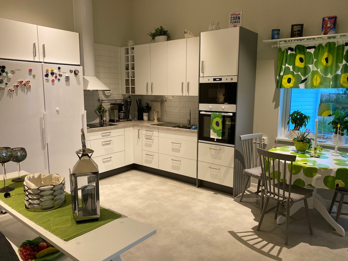 Our studio, built in 2016 is situated close to the city but still in the countryside. There are three beds - one single bed at the loft and a sofa bed (queen size) in the combined kitchen and living room. If there are requests, we can also arrange space for a fourth person on a mattress at the loft. Large bathroom with sauna. 28 sqm with bathroom and loft. Pool and garden are shared with the host family. A newly built outdoor gym is 100 meters from the studio.