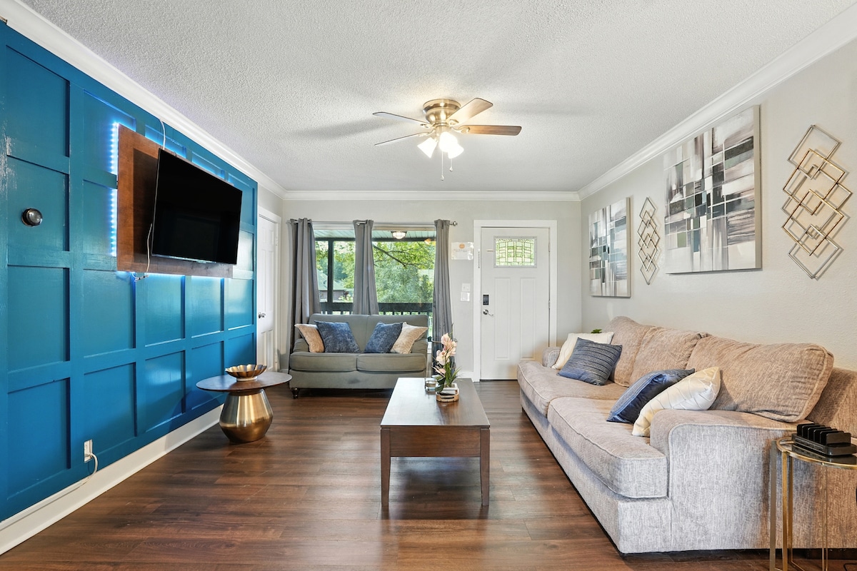 Kick back and relax in this calm, stylish space. This 2 bedroom, 1 bathroom home is perfectly located in the heart of downtown Tulsa in a quiet neighborhood that offers privacy to our guests. The space has a large fenced in backyard and front yard & private driveway for ample parking. The location is perfect for visitors to experience all downtown has to offer. Walking distance to major attractions. Cox Center .6 miles BOK center .7 miles Tulsa Theater 1 mile Cain’s Ballroom 1.2 miles