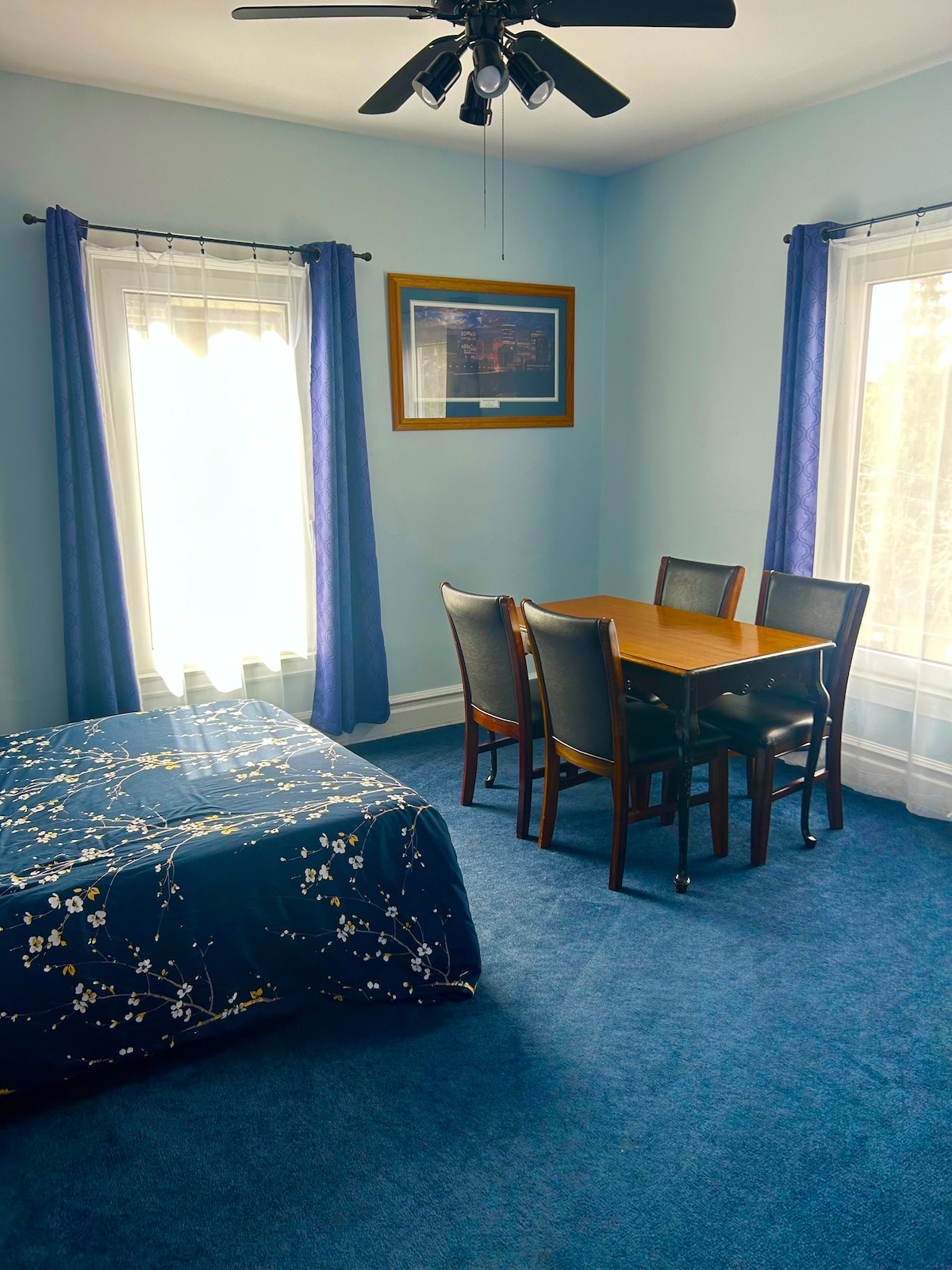 Welcome to our charming 3rd-floor studio located within a Victorian home in the heart of the NE Arts district! This cozy retreat boasts an abundance of natural light streaming in through skylights, illuminating a space adorned with beautiful plants, creating a serene and inviting ambiance. This delightful haven features a warm fireplace perfect for cozying up on chilly evenings. Please note, there is some low clearance near the head of the bed and in the bathroom/kitchen area.