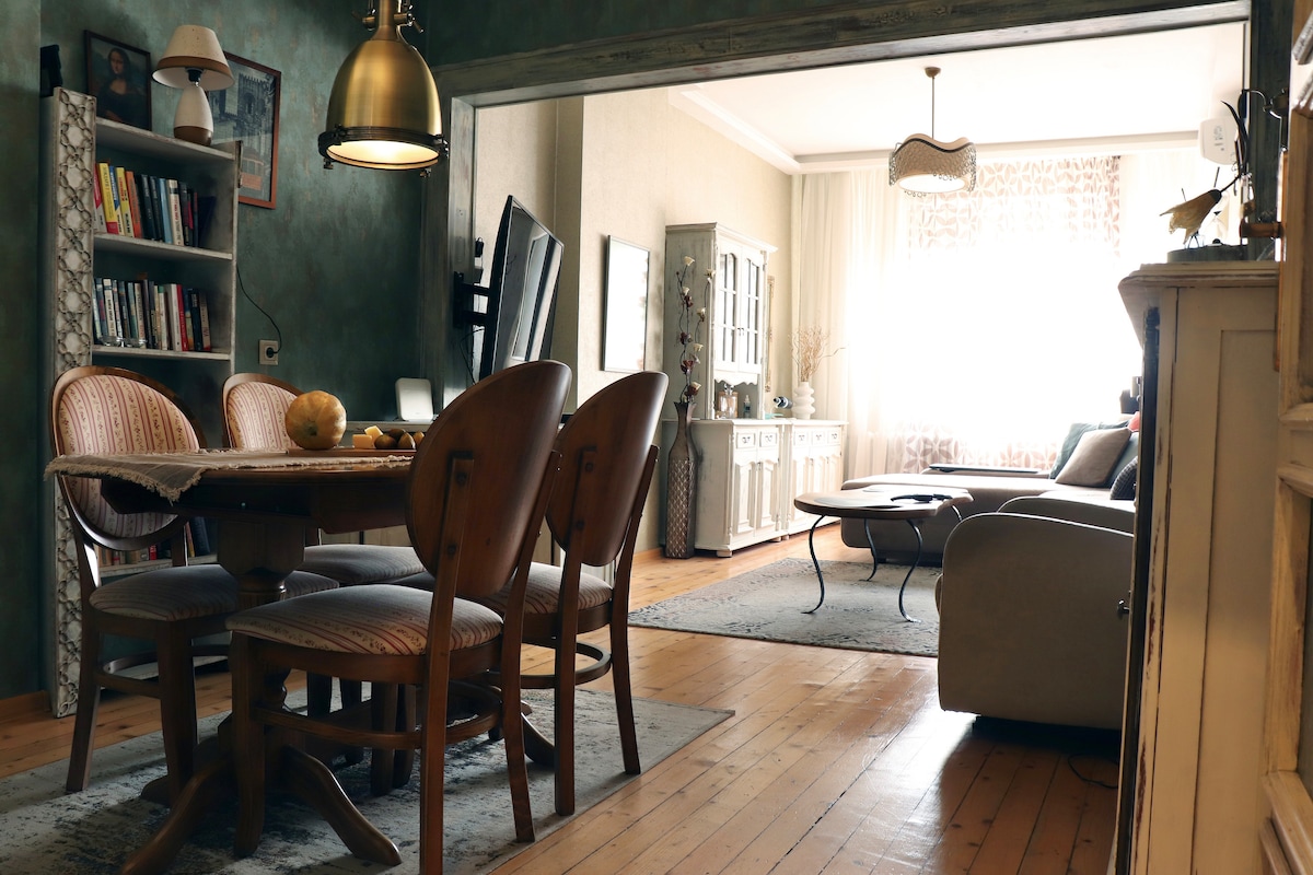 Lovely, quiet, and cozy place. Apartment located in the centre of the city but also in the forest. A smart control of the equipment for as much comfort as possible. This place can guarantee your desired vacation. It has two private rooms, a bathroom, a terrace, and a small yard. The kitchen has all the essentials for both short and long-term stays. An eco path leads to some of the most beautiful spots in the city.