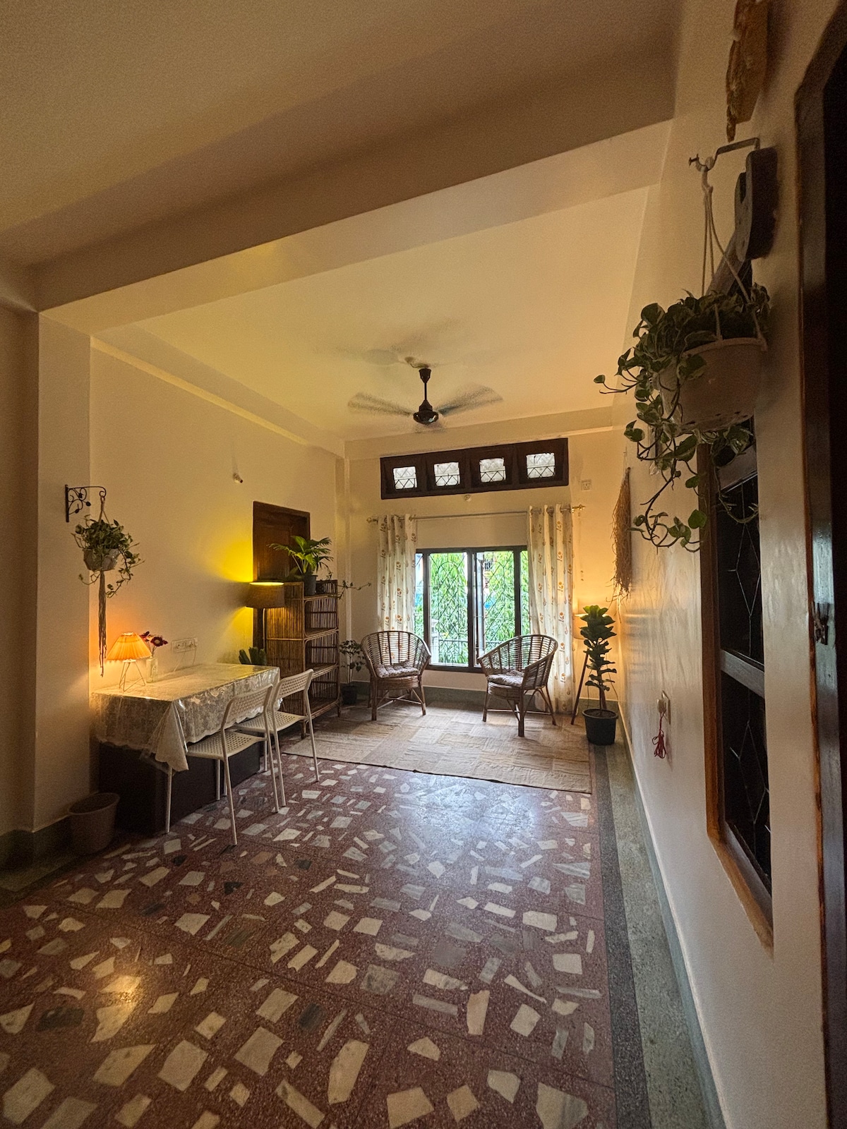 The Cozy Zoo Road Apartment offers the best of both worlds - a lovely and peaceful abode in one of the most central locations of the city. The apartment has ACs in all the rooms. It is located in a private family lane. It offers everything you may need to have a homely experience. Super high-speed wifi, private parking, attached bathrooms, full-fledged kitchen, smart TV, workspace, and a pretty patio. It has been renovated and designed in an eco-friendly way reusing vintage furnitures.