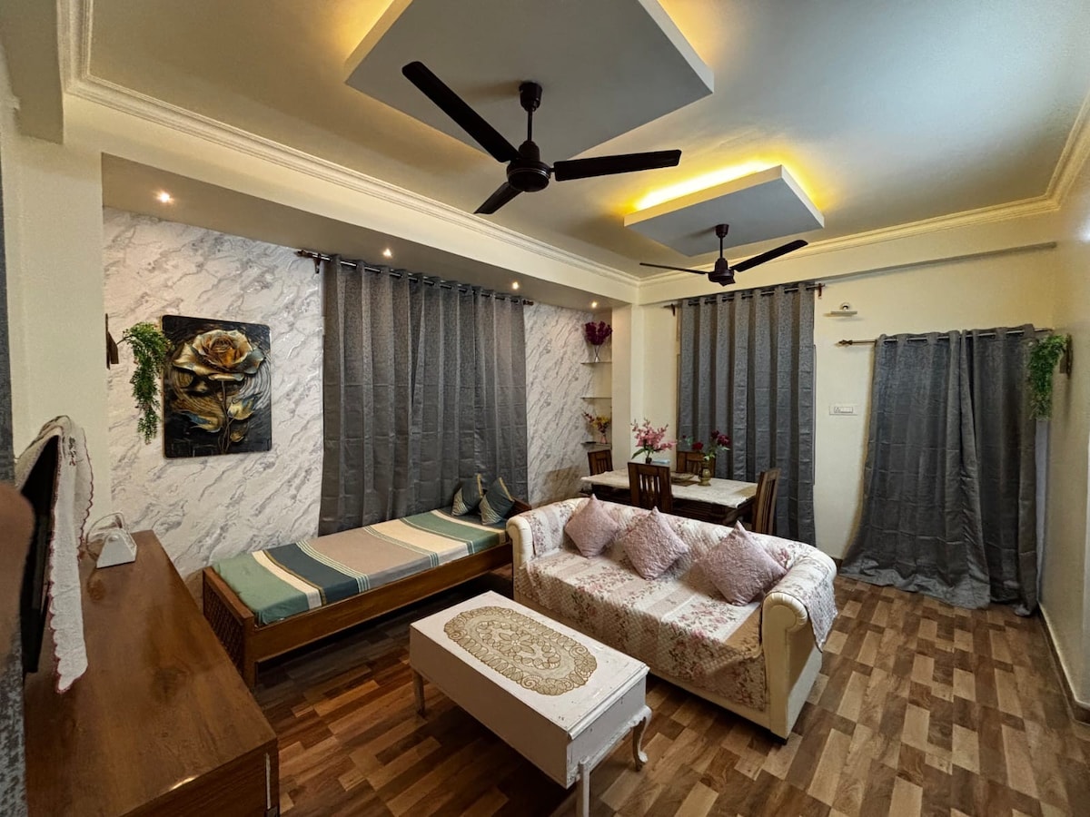 Welcome to DIBYALAY, a Homestay in the heart of the city of Guwahati Experience a perfect blend of antique charm and modern comfort at our 1BHK homestay, ideally located in the heart of Guwahati. Just steps away from GMCH, Pharmacy, hospitals, Smart Bazaar, and shopping malls. A stylish space with antique furniture, living plants, and modern amenities. Fully equipped open kitchen, AC, TV, WiFi, and a balcony to unwind. Close to top city attractions, shopping, and healthcare facilities.