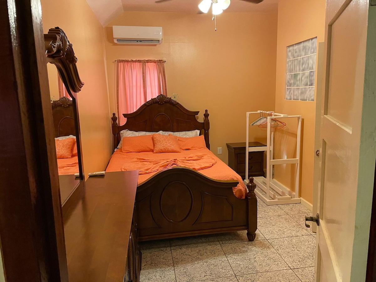 Create a peaceful, friendly atmosphere in this trendy space. One modern room with your own private connected bathroom, AC and Television. Guests can share this open concept kitchen, dinning room and living room at their leisure while they cozy up with their loved one with an additional AC and Television. Each bed can fit 2 people and room has separate keys. You will feel safe and at home with all the necessary comforts such as a washer and dryer etc. We cannot wait to see you.