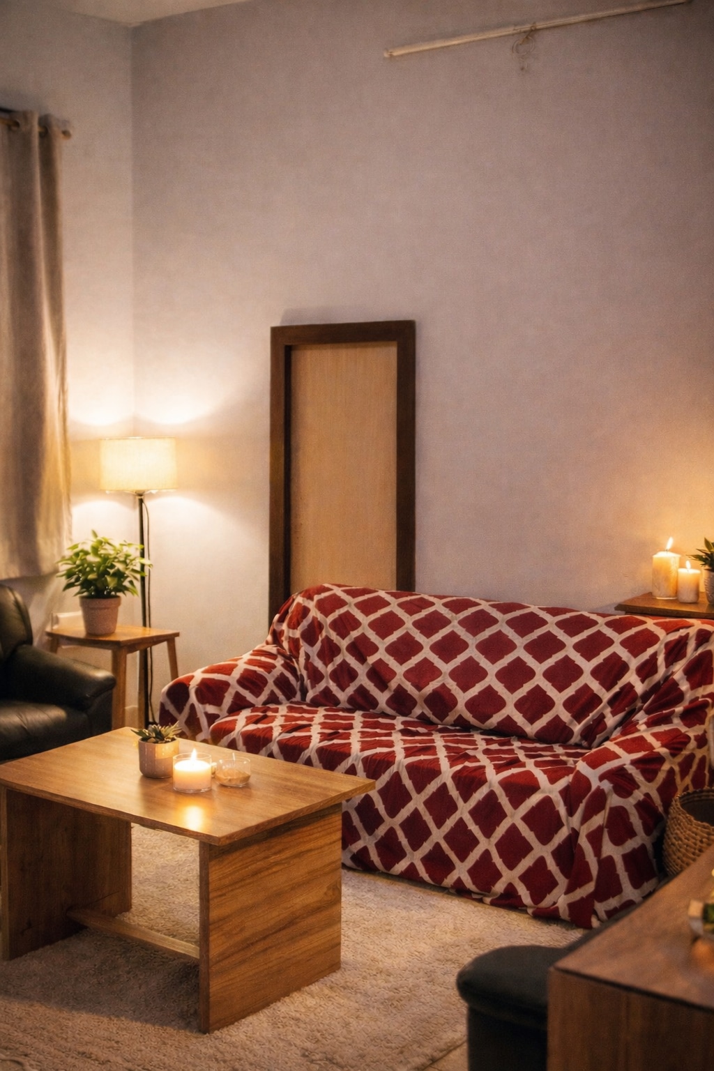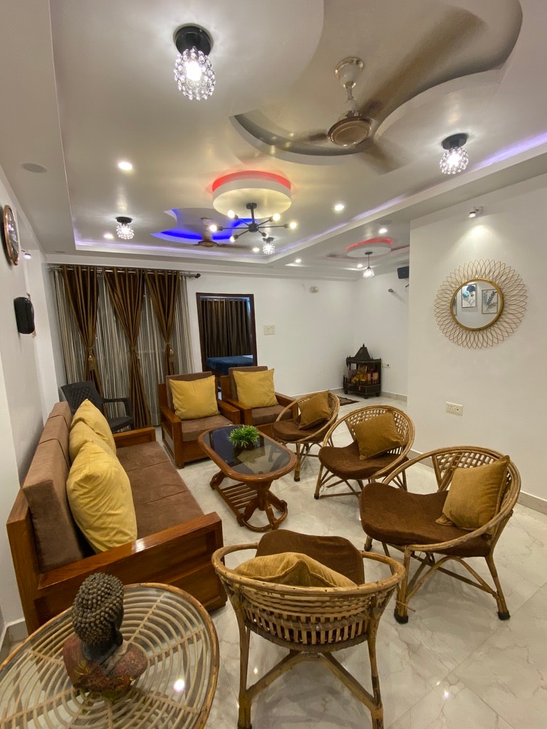 Forget your worries in this spacious and serene space. "A unique and spacious home offering a peaceful, family-friendly and couple-friendly stay in a central location. Designed for comfort and relaxation, the apartment provides a calm atmosphere while being close to major attractions, markets, and restaurants — perfect for a comfortable and memorable stay.'' Kitchen appl. free to use. Gas charges are ₹400 extra,the kitchen fully stocked with spices, oil, and other essentials ₹500 extra.