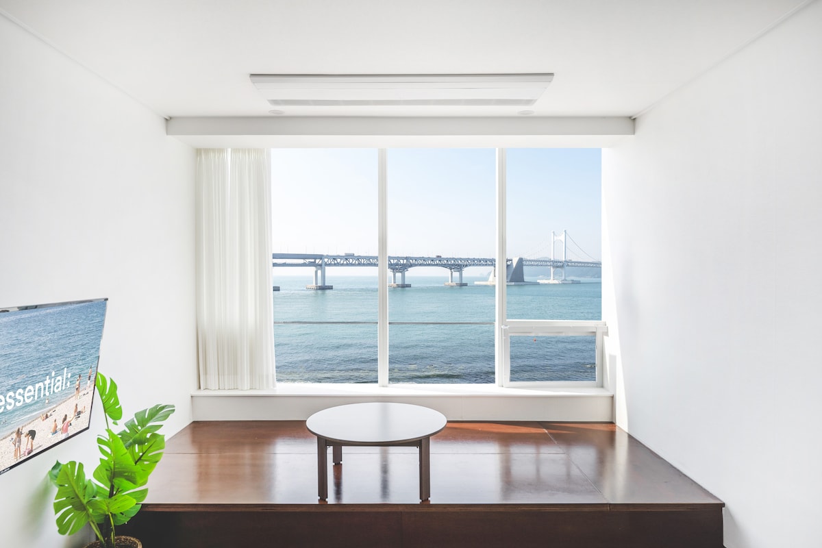【海景露台】开业特价/海云台海滩3分钟/2张床/感性住宿/家庭房/Netflix可用/洗衣机烘干机