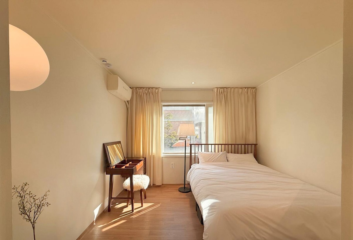 ■ 본 숙소는 미스터멘션 특례를 적용받아 내국인 공유숙박 합법 업체로 등록되어 운영되고 있습니다. ■ 이곳을 찾은 이들의 소중한 시간을 위해 고민하고 또 고민했습니다. 특별하고 아름다운 그들에게 이 공간을 선물해드립니다. • 인원은 2인 기본이며, 최대인원 4인까지 가능합니다. • 체크인 오후3시 체크아웃11시 • 어메니티 드라이기, 샴푸, 린스, 바디워시, 핸드워시 • 어메니티 미디어 & 기타편의 55인치TV, WIFI, 드럼세탁기, 시스템에어컨 • 어메니티 다이닝 4인용 다이닝 테이블, 냉장고, 전자렌지, 전기포트, 네스프레소(버츄오 팝), 식기, 수저세트(4인), 조리도구, 와인잔등 컵류, 소금, 허브솔트, 식용류, 설탕 • 주차는 불가합니다 다만, 집앞 짐내릴수 있는 골목주차 가능합니다 참고해주세요. 가까운 위치 사설주차장이 있습니다. 안내가 필요하시면 문의주세요! • 조용하고 편안한 휴식이 가능한 소음이 적은 주택가 단독주택 2층 입니다.