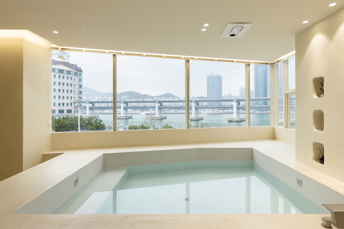 #. This is a legal accommodation officially registered as a foreign tourist city homestay business. โฃ Full ocean view with the entire Gwangan Bridge โฃ Free parking โฃ Non face-to-face check-in (3:00 PM) โฃ Store luggage before check-in (please inquire in advance) โฃ Host manage room conditions and respond to guest โ Gwangalli Beach - 3 min walk โ Millac the Market - 1 min walk โ BEXCO & Busan Cinema Center & Shinsegae Dep. - 7 min by car โ Haeundae - 15 min by car โ Gwangan Station - 20 min walk