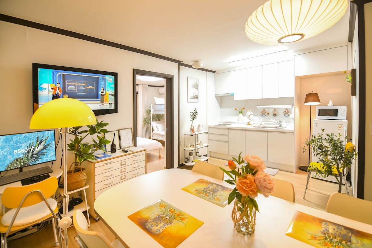 Welcome to The Black Hanok, where classic beauty meets refined elegance. With rare black-tiled roofs and intricate wooden beams, this Hanok blends timeless grace with modern aesthetics. Enjoy breathtaking views of Bukchon Hanok Village and nearby mountains from expansive windows, and unwind in serene comfort after your journey. Special guest privileges await for a truly unforgettable stay. This property is co-hosted by KJ, an official Airbnb Ambassador. Be sure to check out his glowing reviews.