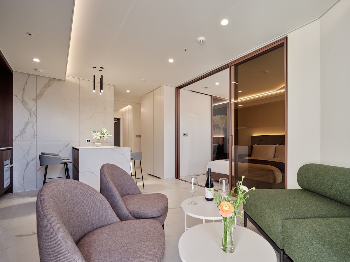 【新酒店】两卧室,位于首尔市中心,适合家庭/朋友旅行,植物套房