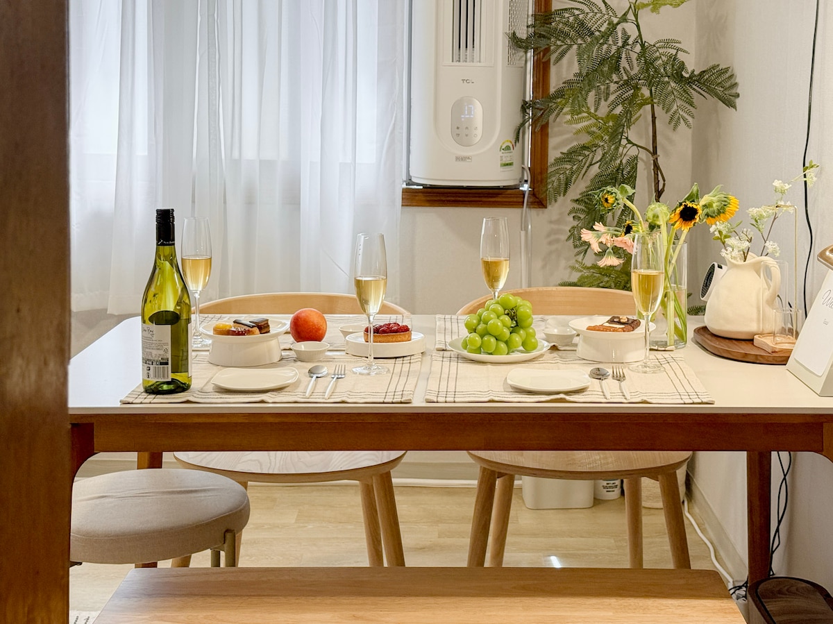 📍건대에서 드물게 30평의 넓고 쾌적한 공간으로 디자이너가 직접 제작한 다양한 감성 가구와 소품으로 이루어진 감각적이고 세련된 공간으로 각종 모임을 즐기기에 넓고 쾌적한 장소여서 재방문이 높은 공간입니다! - 인천공항 약 100분(6013번 버스-정류장에서 3분) - 성수역 3분 - 홍대입구 29분 - 명동(을지로입구역) 18분 - DDP역 13분 🏠브라이덜 샤워 등 다양한 모임이 가능한 감성 공간으로 조용한 환경이라 가족여행에도 좋습니다. 간단한 보드게임이 준비되어 있어요. 🍽️ 다이닝룸에는 대형 10인 테이블, 의자가 있는 주방이 있으며 실내 화장실, 소파 베드, 갖추고 있으며 빔 프로젝터 및 55인치 스마트TV설치가 되어있습니다. 21kg 대형세탁기, 건조기, 중형 냉장고가 있어서 출장이나 한달살기에도 적합한 장소입니다.