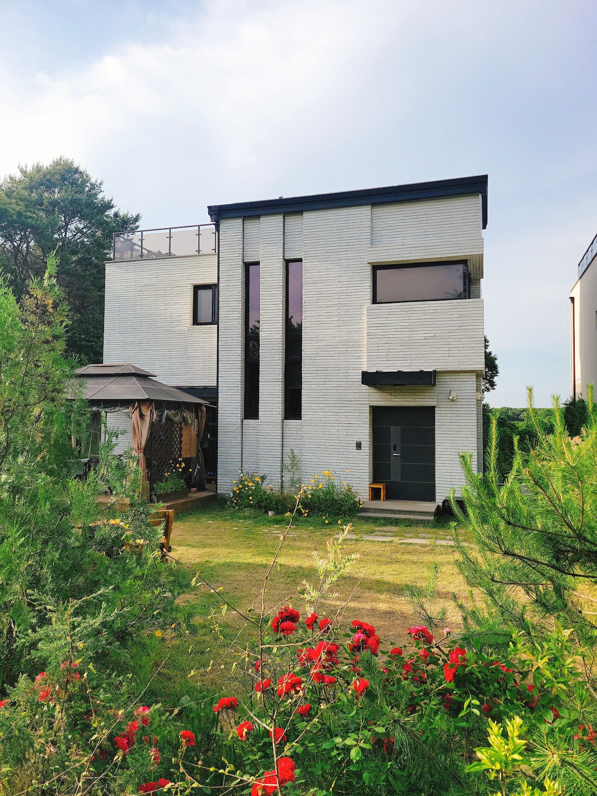 안다미로 는 "그릇에 넘치도록 많이" 라는 순 우리나라 말입니다. 뉴욕출신 젊은 건축가의 건축설계 디자인으로 젊은 감성에 전원생활의 여유를 독채의 프라이빗 함으로 느껴볼수 있는곳 도시생활 의 지친 일상에서 벗어나 온전한 쉼 과 재충전을 할수있는 공간. 퇴근하고 매일 TV앞에 앉아 TV보다 잠이드는 일상을 반복하다보니 문득 가족간의 대화가 너무 없어진것 같은 느낌이 들었어요.... 그래서 우리가족 힐링을 위한 세컨하우스에서는 가족들과 대화하는 시간을 만들어 보고자 TV를 과감하게 놓지 않았습니다. TV대신 대형 120인치 빔프로젝터 로 온가족이 영화감상후 청정자연을 가까이서 느끼며 평소 가족들과 부족했던 대화와 소통이 많이지는공간 사랑이 넘치도록 가득한 안다미로 가평 에서 매일의 지겨운 일상을 벗어나 쉼 과 힐링을 동시에 안다미로 화이트 는 개방감 있는 높은층고 와 넓은 주방 과 거실공간 으로 4인이 머물기에 너무나 쾌적한 공간입니다.^^