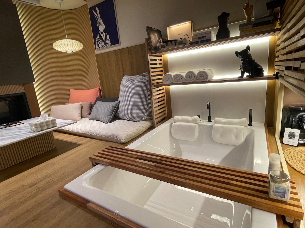 상무지구 호텔식 자쿠지 파티룸 광주 유일한 실내 자쿠지 숙소 (스파 이용 포함 있습니다) 특별한 공간에서 특별한 시간을 갖는 호텔식 레지던스 파티룸 감각적 디자인과 예술적 인테리어 , 꼭 필요한 편의시설 최상급 호텔 비품, 주방시설에서 침구까지 완벽을 추구합니다