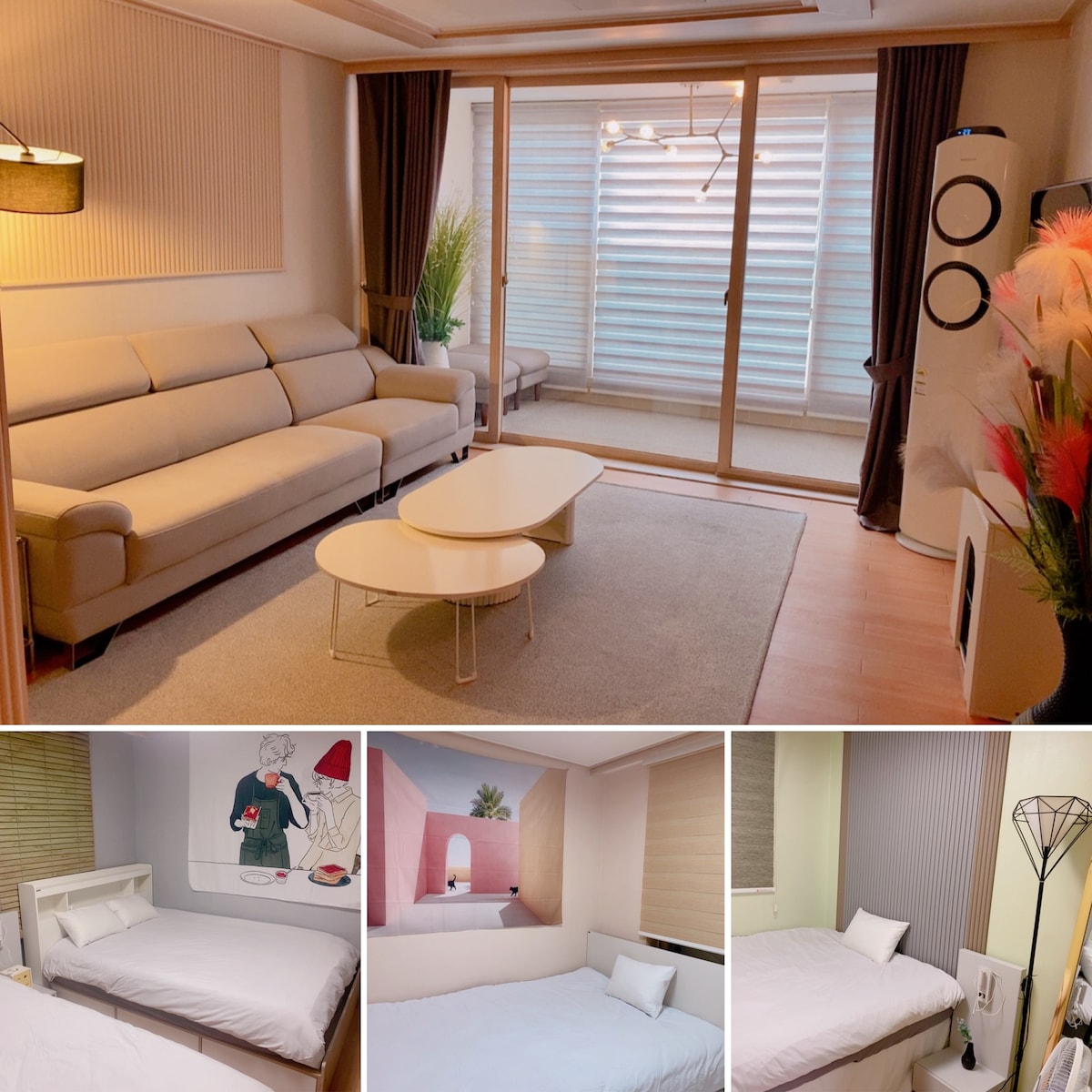 🧈Welcome to Butterhouse! 🍔 🌟 If you are a consecutive night discount, please contact us in advance. :) 🚶It is located 5 minutes walk from Uncheon Station. 🚘 It takes less than 10 minutes by bus terminal, Kia Champions Field, Sangmu District. 🍳 Free fish bun kit for review event participation💗 🛌 Wide queen-sized bed + cozy super single bed is provided 🅿️ There is a large parking lot, so you can park for free without restrictions. 🍷 Talk to relieve your fatigue of the day!