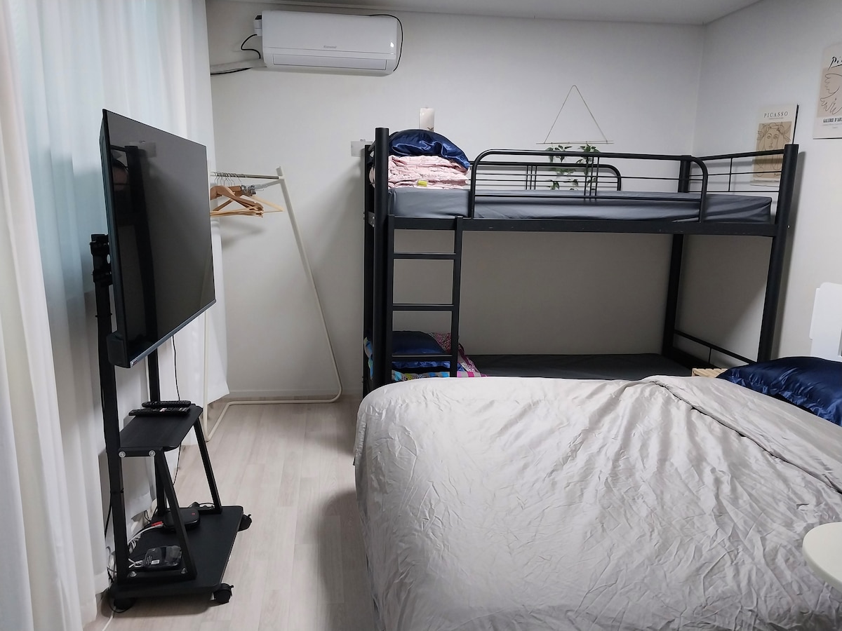 🚗 By car Han-ok Village: 20 minutes Jeon-ju Zoo Park: 10 minutes Duk-Jin Park: 5 minutes 🚶 Bust stop: 5 minutes Supermarket: 7 minutes 3 Queen Beds (155cm * 200cm) In case of more than 6 guests we prepare foldable mattress and other bedding by one guest. (For example If guests are 8 we prepare 3 queen beds and 2 foldable floor mattresses.) 2 Toddler beddings (Extra cost) 🚫 Pet🐶 / 🚭 Smoking / 🚫 Barbeque Grill🍖🔥 If smell lingers in the house more cost will be charged.