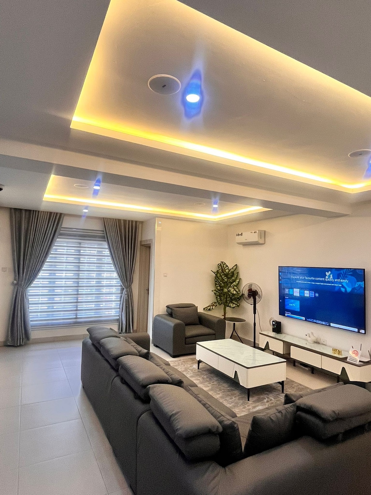🛏️ 2 Spacious Bedrooms 🛌 2 Beds (Sleeps 4 Guests) 🚿 2 Bathrooms En Suite 👨🍳 Fully Equipped Kitchen 🛋️ Large Living Area 📶 High-Speed Wi-Fi 📺 Netflix & Amazon Prime 🔊 Bluetooth Ceiling Speakers 💡 Ambience & Motion Sensor Lighting 🛡️ 24/7 Security ⚡ Steady Power Supply 🚗 Free Parking 🧹 Free Cleaning Services 🎮 Game Console (PlayStation 5) 👨🍳 In-House Chef on Demand 📍 Convenient Location 🚖 Logistics Available 📩 Message us for early check-in and check-out requests! 🚀
