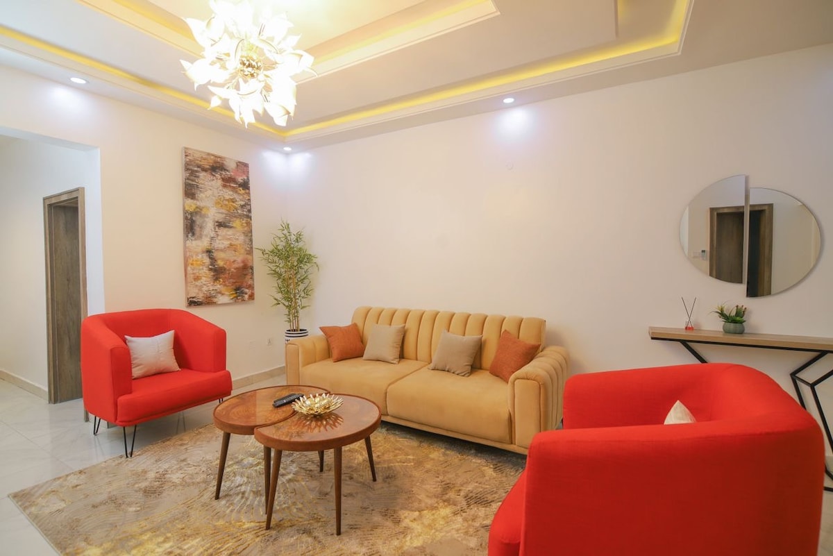 Welcome to Meka Homes—an elegant, smart apartment designed for comfort, privacy, and ease. Perfect for short and long stays, this home is located in a secure, gated estate with a private compound. It features king-sized beds in all ensuite rooms, smart TVs with streaming services, unlimited high-speed internet, backup power, and a well-equipped kitchen. Enjoy a peaceful environment with easy access to nearby grocery stores, pharmacies, and eateries.