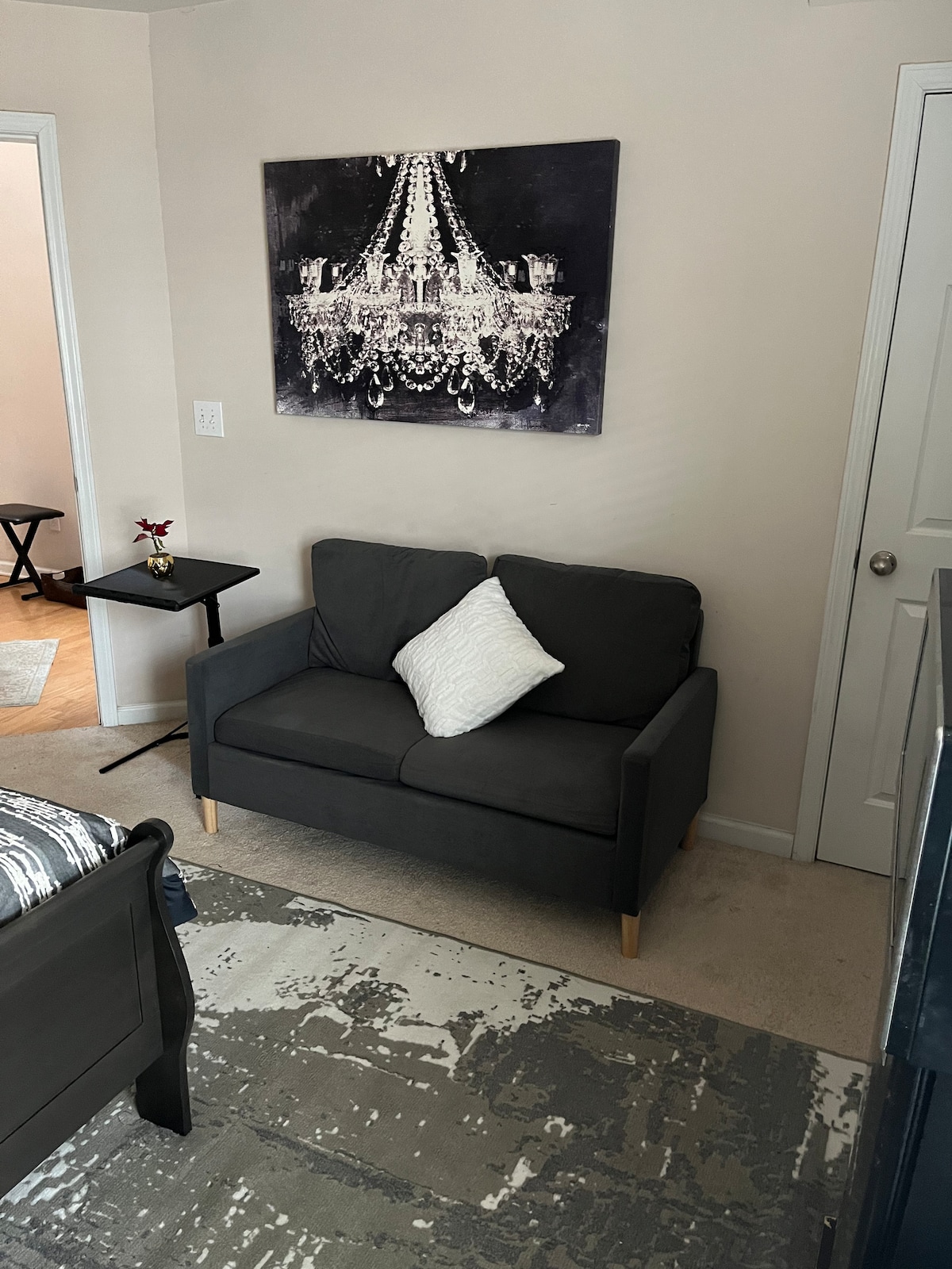 Enjoy your own private basement suite with everything you need for a comfortable stay — at a price that won’t break the bank! This space includes a private entrance, small fenced outdoor area, bedroom with full-size bed, desk, living room, bathroom, and kitchenette equipped with a Keurig, microwave, toaster oven, refrigerator, hot/cold water dispenser, and disposable plates + cutlery. (No kitchen sink available) Roku TV included. Free street parking. Just 10 minutes from downtown Lawrenceville!