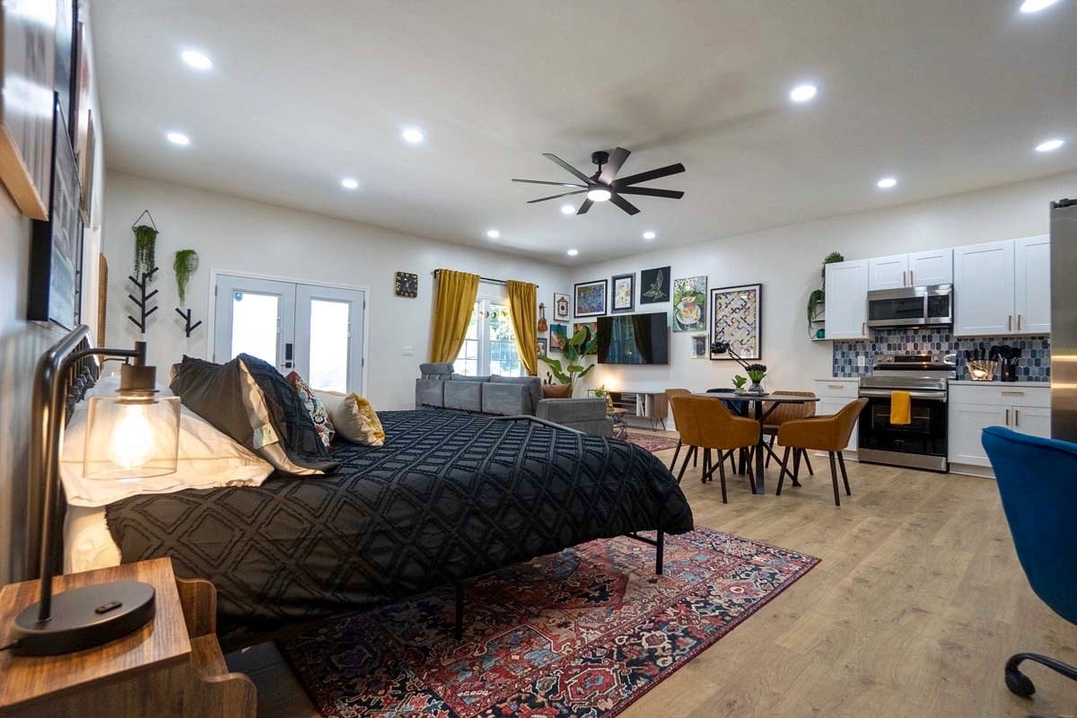 Explore this unique place that has a style all its own. Nestled in Norcross, this stylish retreat offers quick access to Atlanta’s best attractions. Downtown Atlanta and Mercedes-Benz Stadium are just 20 miles away, Stone Mountain Park is only 18 miles from your doorstep. With Interstate 85 nearby, you’ll enjoy effortless travel whether you’re heading into the city or exploring Georgia’s natural treasures. Lenox Square Mall and Mall of Georgia are approximately 20 miles away from the studio.