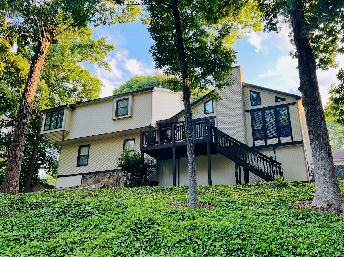 Windows everywhere make it feel like a tree house, on the lake. Our families home is all about family & friends gathering and having fun. The spaces in the home are very socially engaging. Take an easy 45 second, walk to the lake in our quite cove and go for an evening canoe, its pretty special. Bring your own boat and tie up at the dock if you prefer. The creek in the back of the home, that flows into Lake Lanier, is lightly active and creates a nice soundtrack for evenings on the back decks.