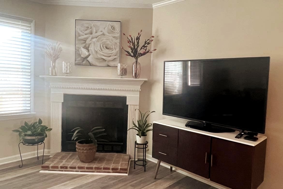 Welcome to your stylish getaway in Downtown Buford! This 2BR, 2.5BA townhome sleeps 4 and features 2 king beds, a fully equipped kitchen, and streaming TVs in every room. Stay comfortable with central heat/air, fast WiFi + workspace, and in-unit washer/dryer. Reserved parking for up to 4 vehicles (driveway + garage) makes your stay easy and convenient. Perfect for relaxing after exploring all that Buford has to offer!