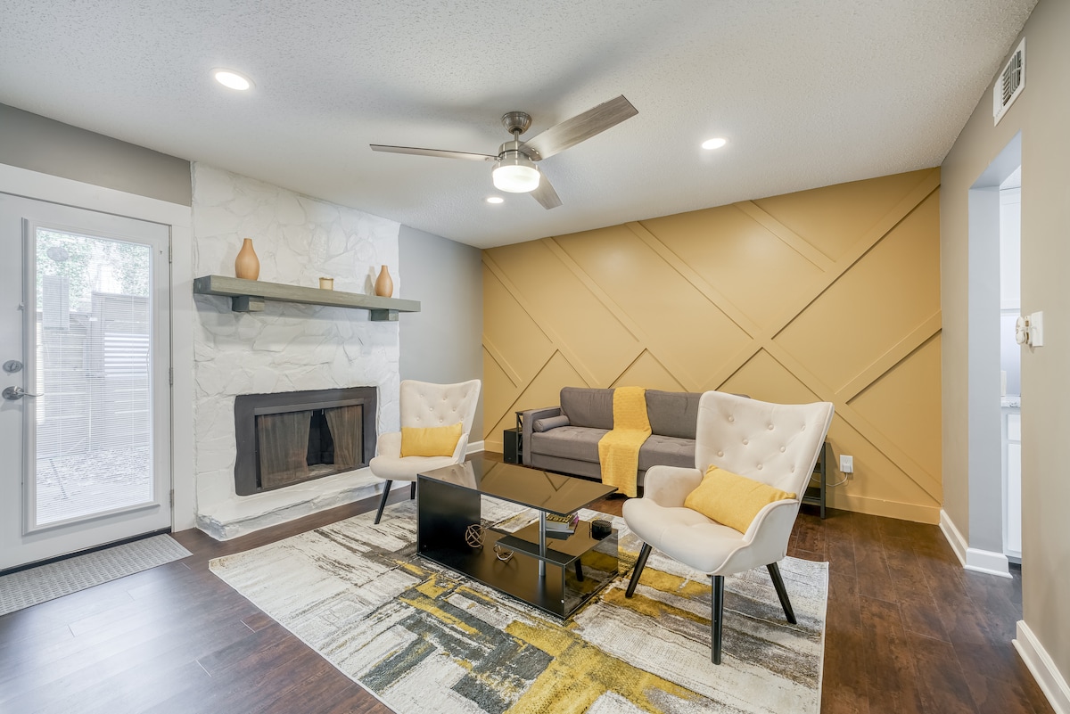 迷人的双卧室公寓,带壁炉和凉亭