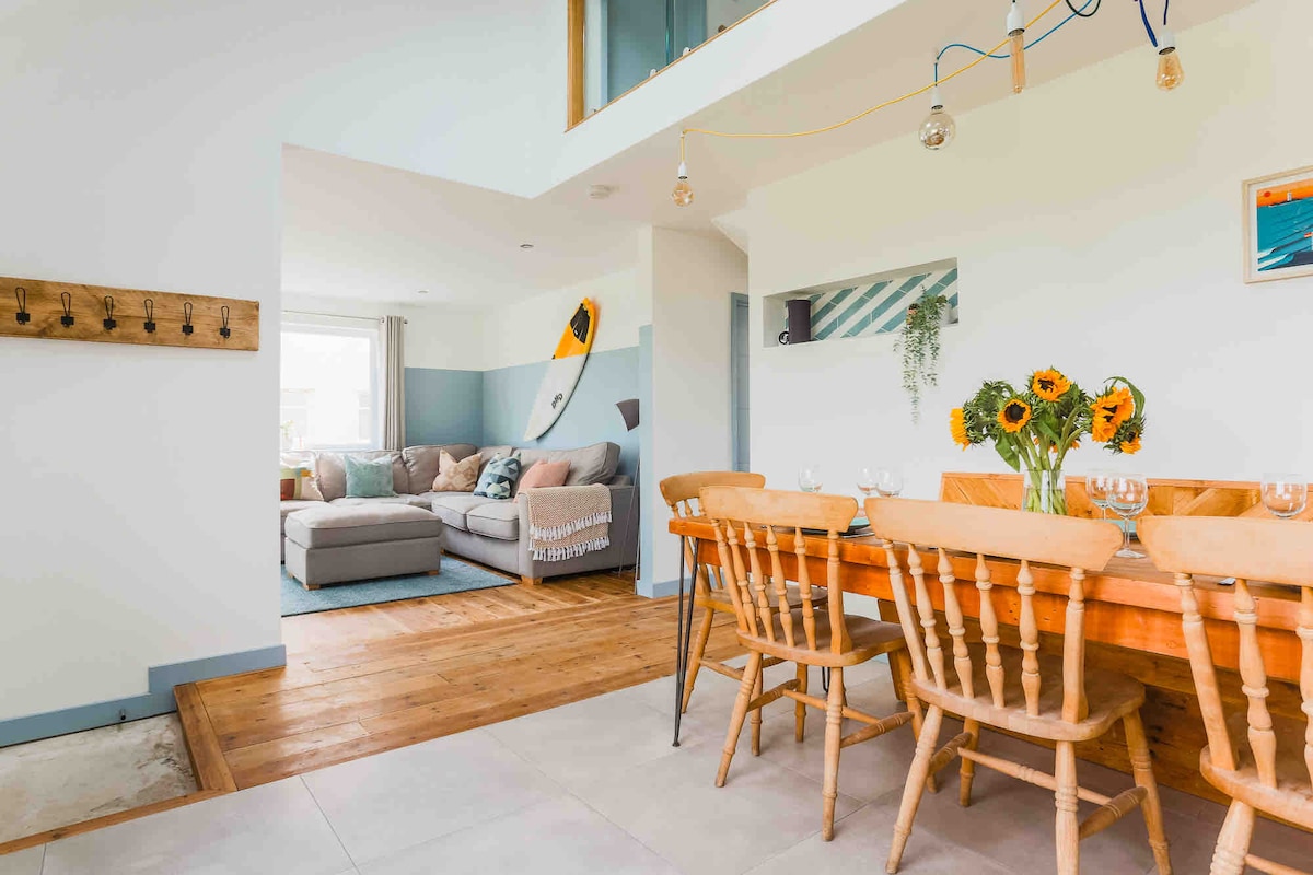 Relax and inhale the sea air from a spacious, open-plan apartment with panoramic views over the iconic Godrevy Lighthouse and St. Ives Bay. In summer enjoy a glass of fizz on the balcony as the sun sets over the sea; in winter come and watch the waves crash over Godrevy island. Tucked away on the coast in a designated Area Of Outstanding Natural Beauty, only ½ mile from Gwithian surf beach and with St. Ives just across the bay, enjoy peace and tranquility in the heart of the Cornish countryside.
