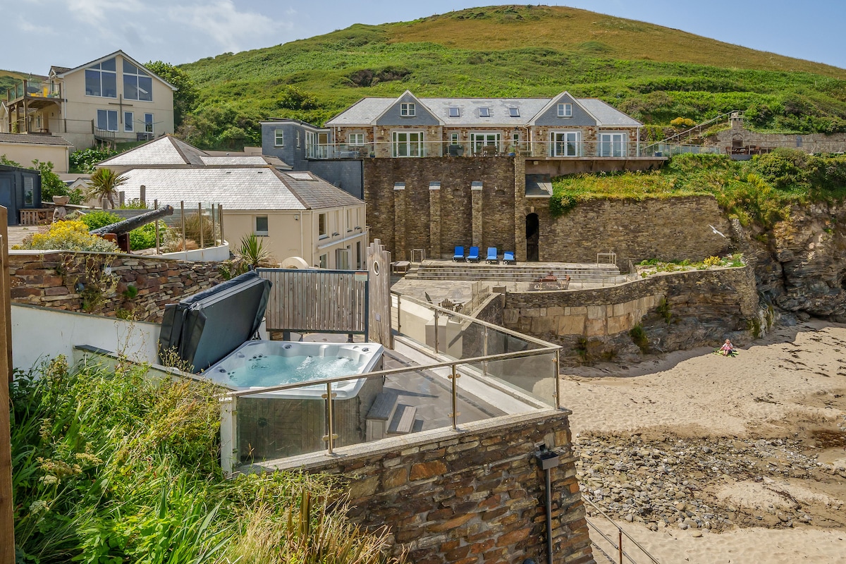 Beach-front accommodation sleeping 10 Hot tub with sea views Firepit with seating area overlooking the beach Parking for 4 cars EV car charger 4 Bedrooms (3 with en-suites) plus a playroom with bunk Outside kitchen area with Big Green Egg BBQ Sky TV and Sky Movies Package Cinema Den with Games Consoles & Popcorn Machine Dog friendly - Up to 4 dogs with prior consent Direct beach access through a gate from the garden Excellent Wifi and designated working area with Mac Sonos sound system