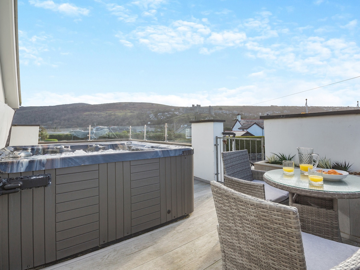 'THE VIEW' is a stunningly located contemporary FIRST FLOOR apartment! We can sleep 4 or even 8 guests if booked together with our no. 2 ‘THE VIEW’ on the ground floor! Lounge back on the sofa, and gaze out on to the whole of Anglesey and all the way down the famous waters of the Menai Straits. Just minutes from the A55 it’s the perfect hub to explore the wonders of both Anglesey and Snowdonia 'THE VIEW' is your perfect dream get away from the hustle and bustle of modern life and relax!